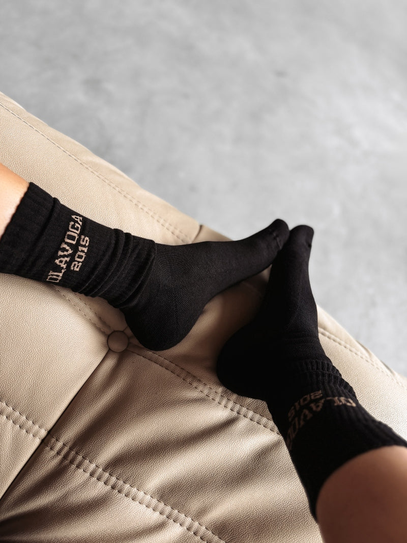 Söckchen aus hochwertiger Baumwolle. Warm und weich. Stickerei mit dem Markenlogo OLAVOGA 2015 an den Seiten.