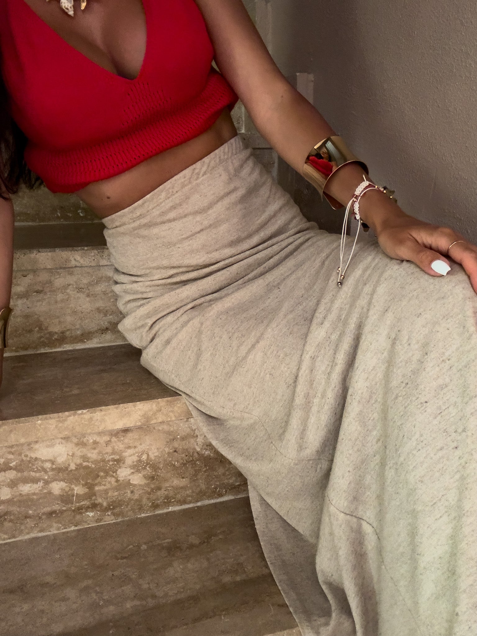 Ein klassischer Maxirock mit einem Schlitz auf der Rückseite ist ein eleganter Vorschlag für Frauen, die Wert auf Stil und Komfort legen. Hergestellt aus hochwertigem Material, passt es perfekt auf die Figur und betont seine Vorteile. Die Länge des Maxi verleiht ihm einen zeitlosen Charakter, und der subtile Schlitz auf der Rückseite verleiht Sinnlichkeit und erleichtert die freie Bewegung. Perfekt sowohl für den Alltag als auch für formellere Anlässe - es passt gut zu einem Hemd, einem Pullover oder einem taillierten Oberteil.