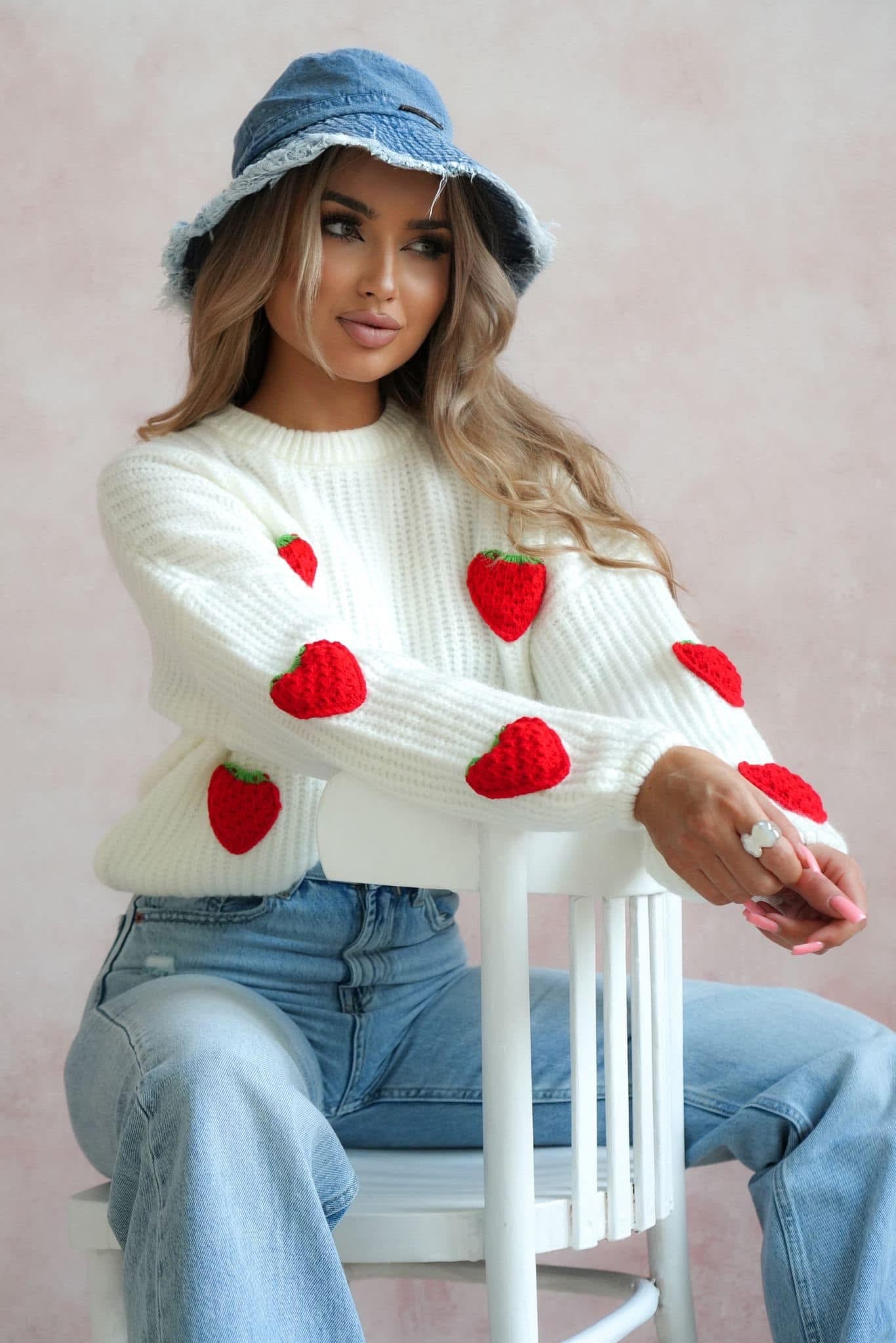 Oversize Pullover mit Erdbeere- Muster. Das MUST HAVE für die Frühling😍 EXTREM weich.