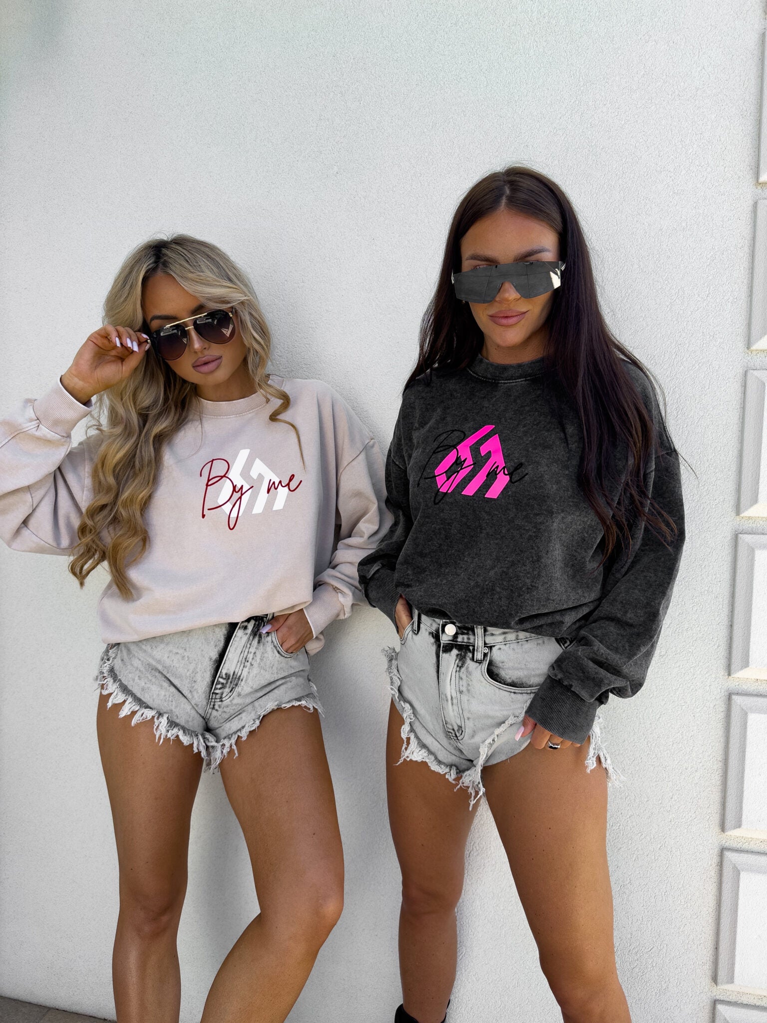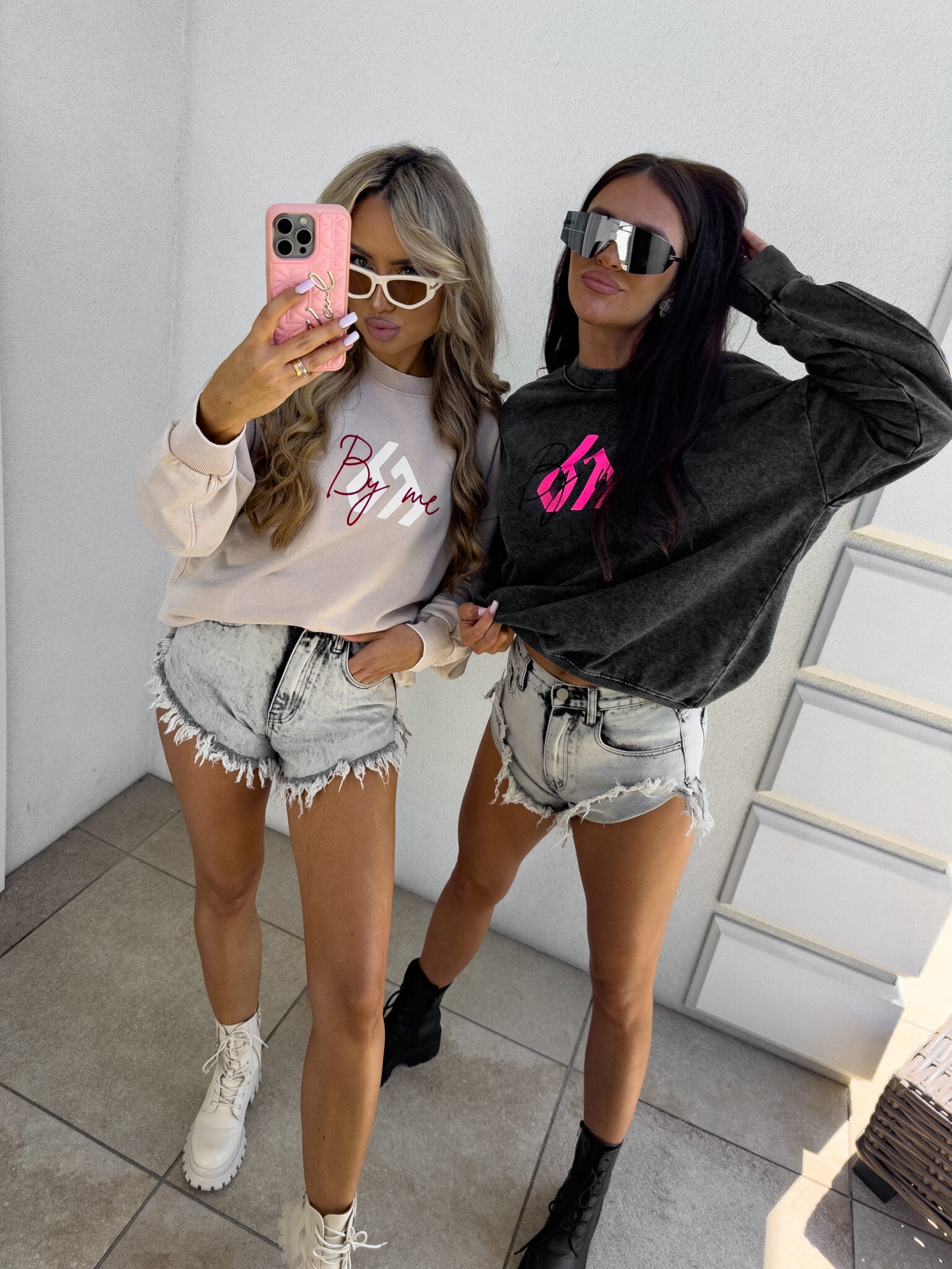 Sweatshirt MONETTE in vorgewaschenen Still Schwarz