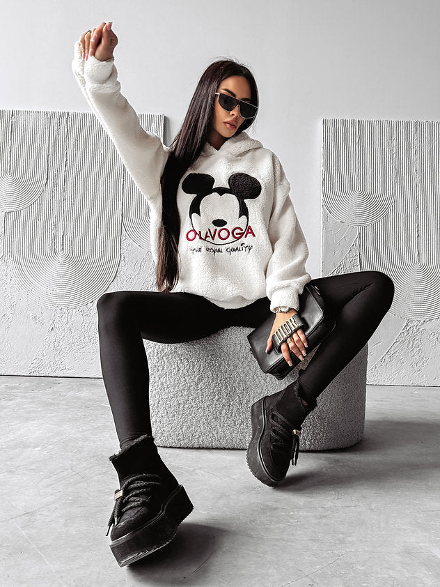 Kapuzen -Sweatshirt OlaVoga Mausi in Creme. Hergestellt aus hochwertigem, weichem Stoff.