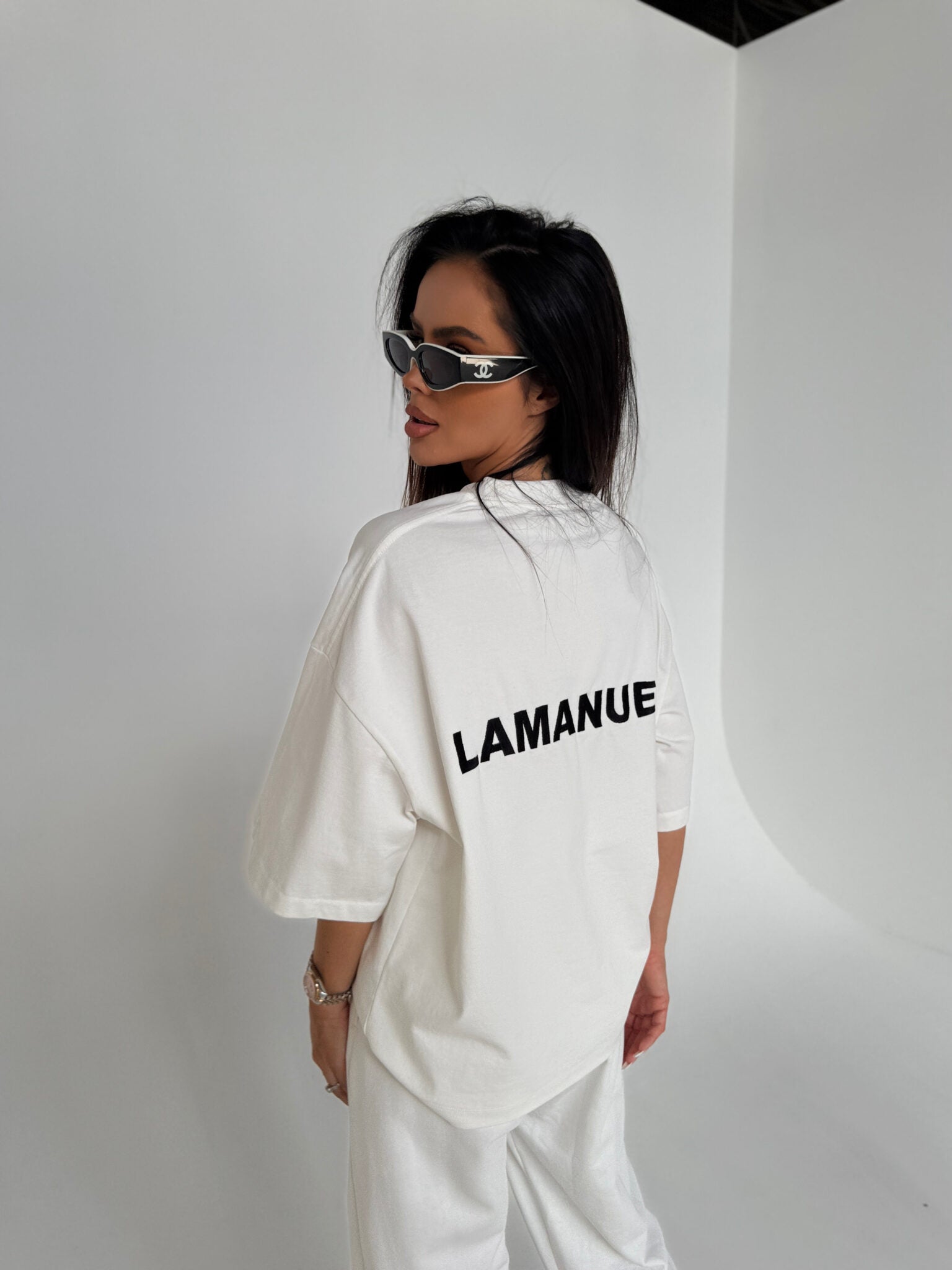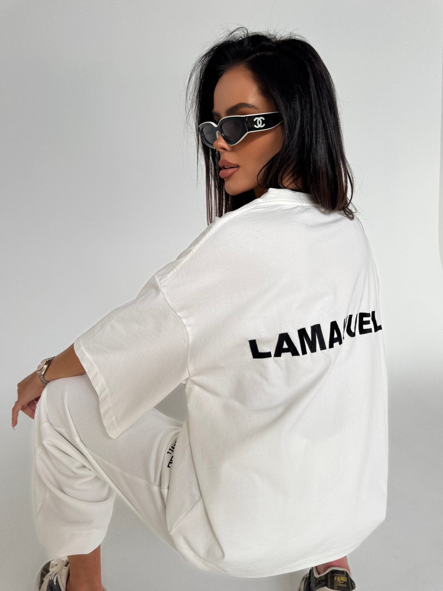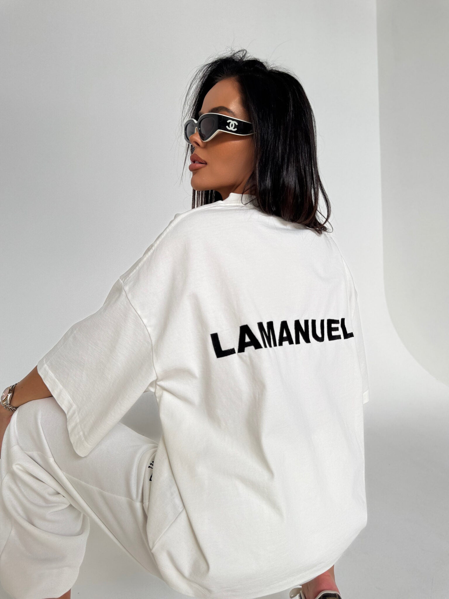Das übergroße T-Shirt mit ausdrucksstarker LAMANUEL-Stickerei auf Vorder- und Rückseite ist eine Kombination aus Minimalismus und starkem Charakter. Der lockere, bequeme Schnitt ist perfekt für den täglichen Gebrauch - solo oder komplett mit anderen Markenprodukten.