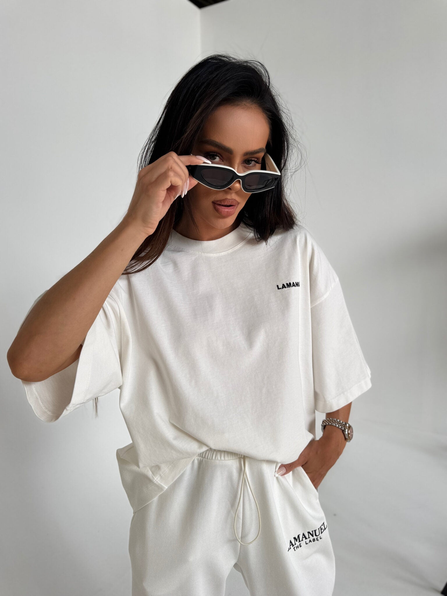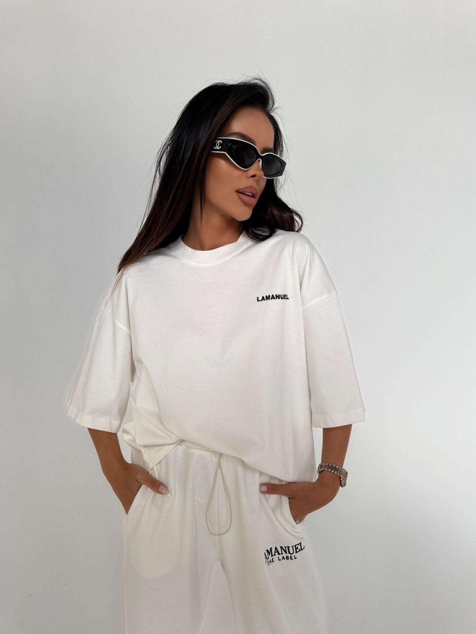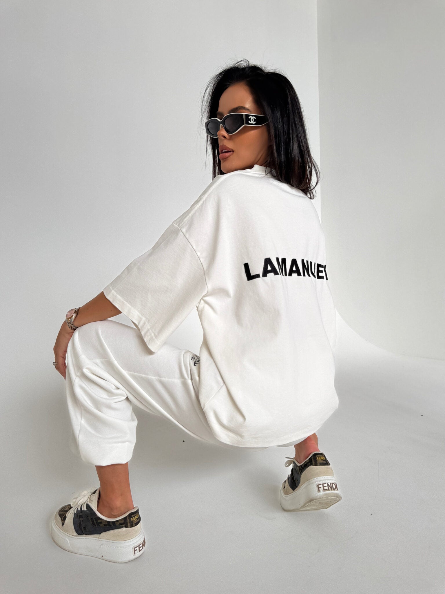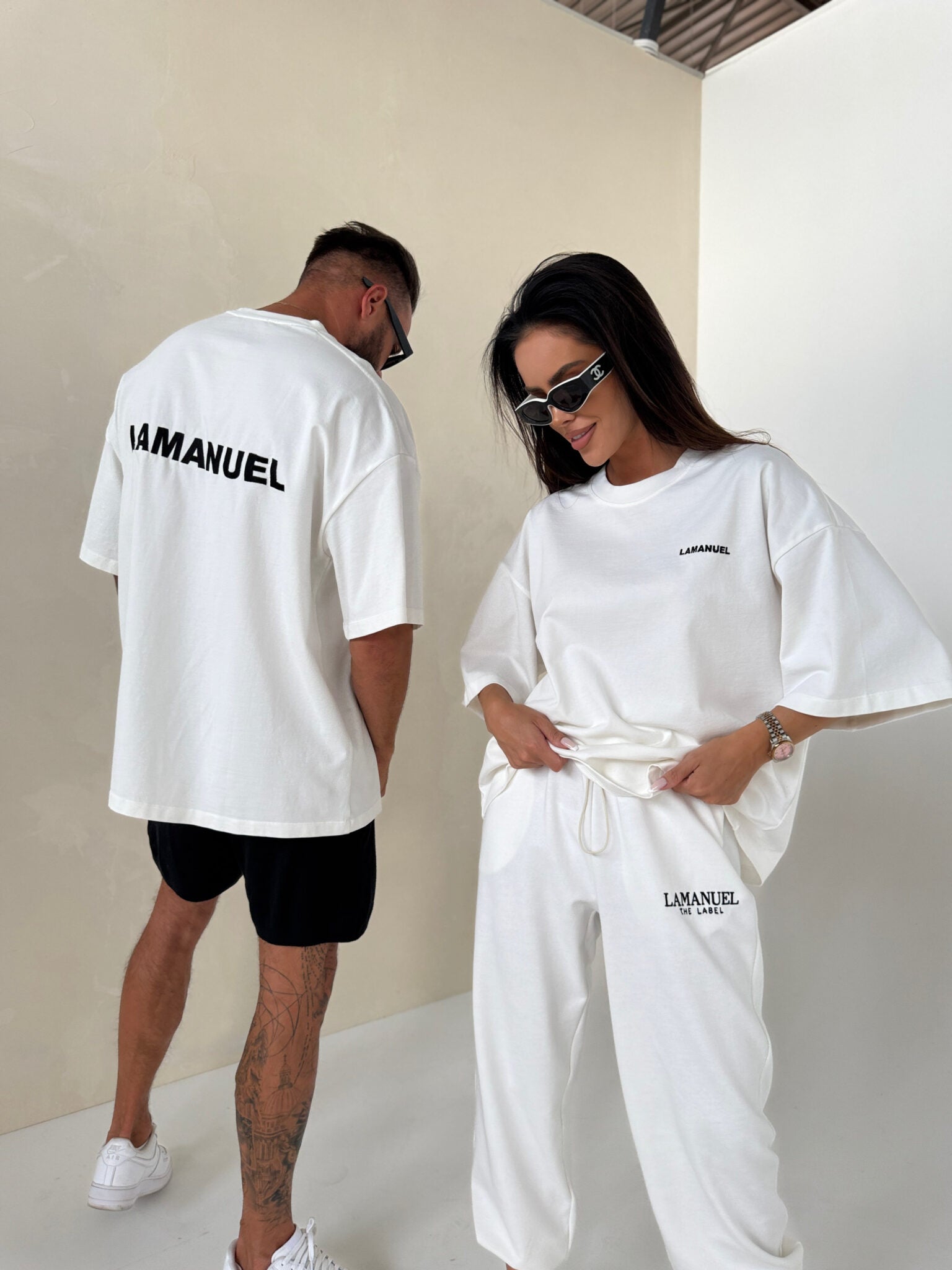 Das übergroße T-Shirt mit ausdrucksstarker LAMANUEL-Stickerei auf Vorder- und Rückseite ist eine Kombination aus Minimalismus und starkem Charakter. Der lockere, bequeme Schnitt ist perfekt für den täglichen Gebrauch - solo oder komplett mit anderen Markenprodukten.
