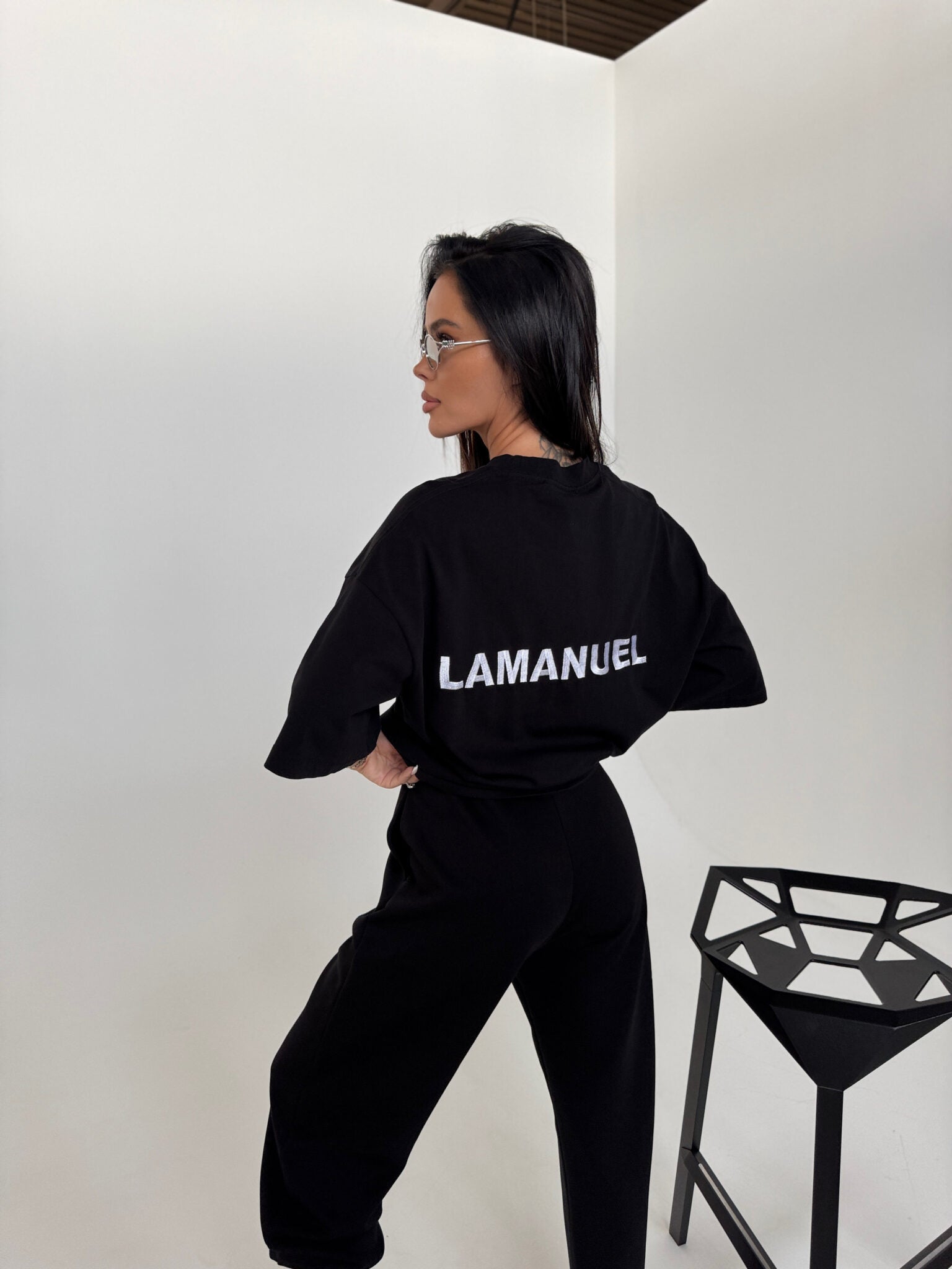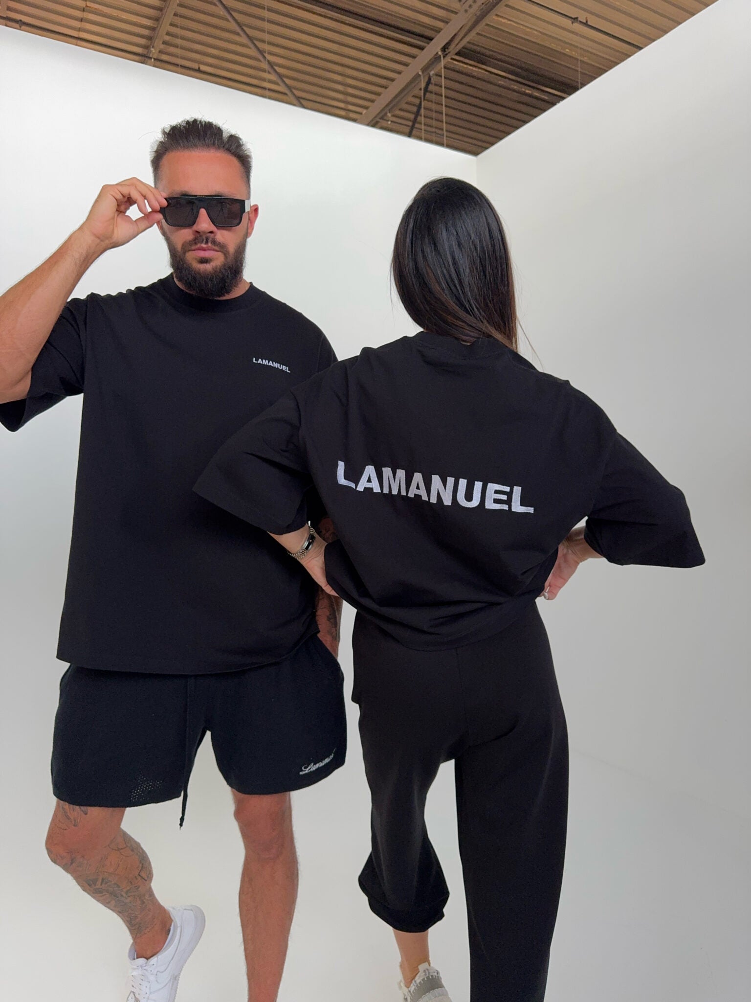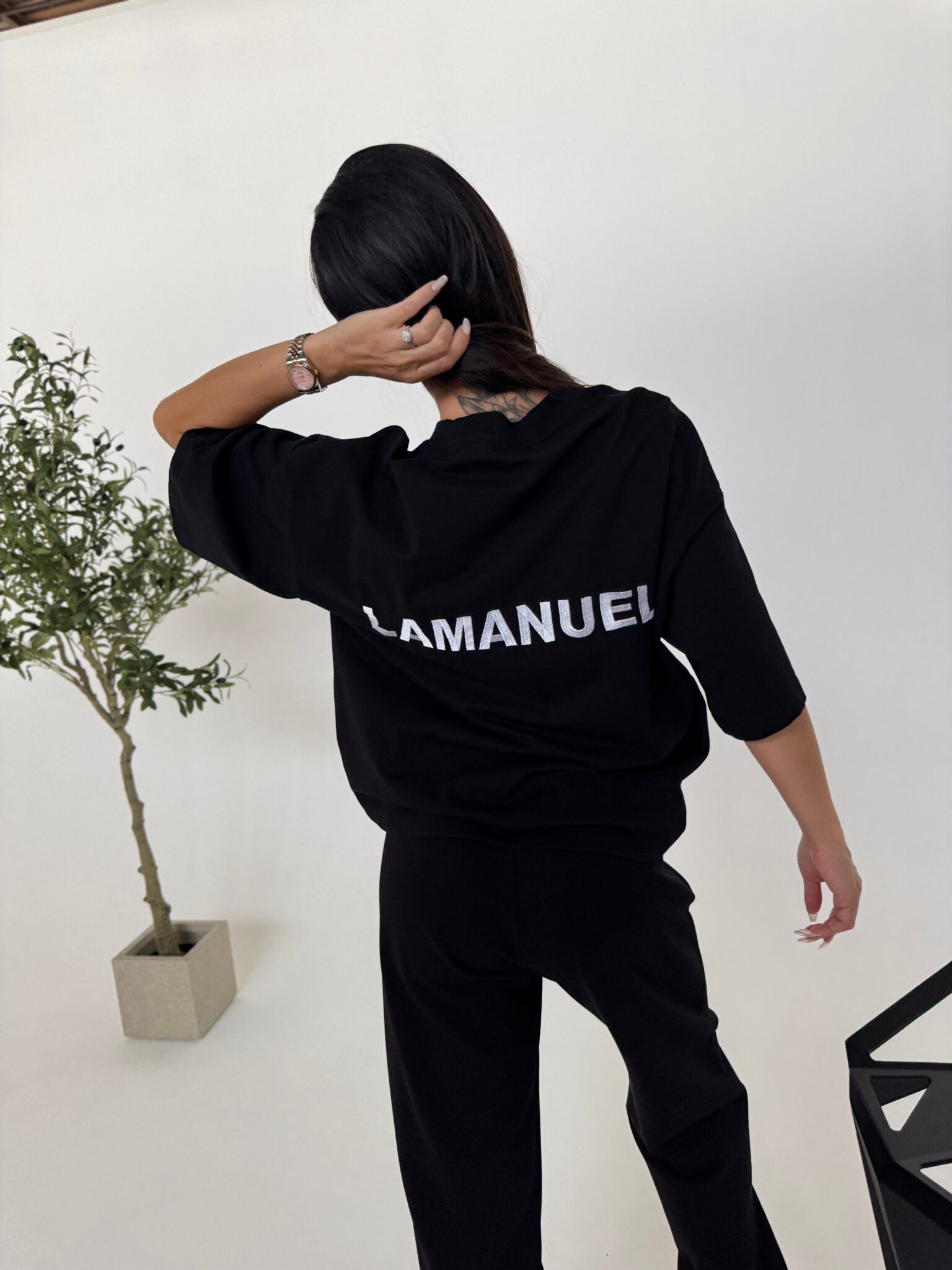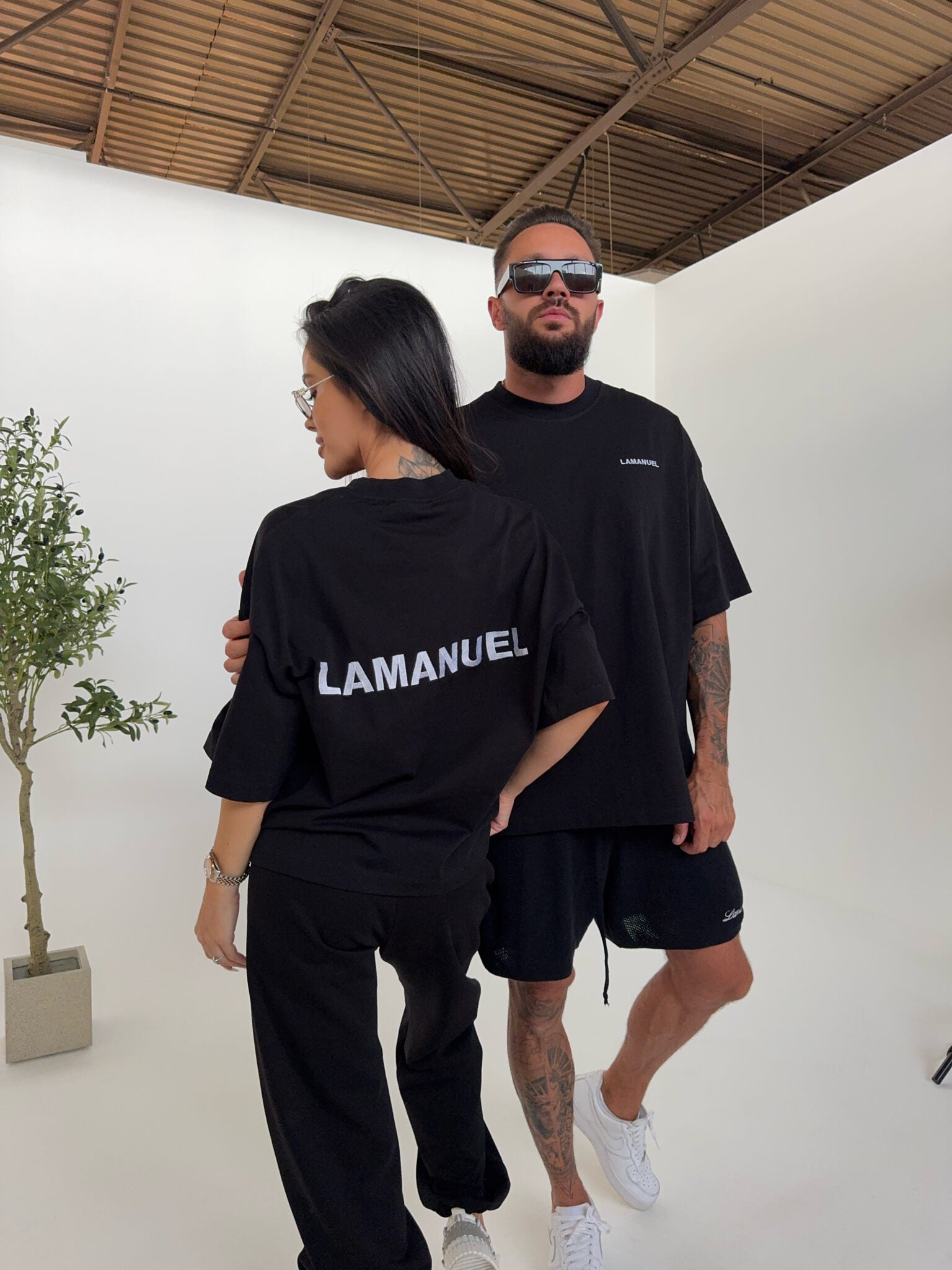 Das übergroße T-Shirt mit ausdrucksstarker LAMANUEL-Stickerei auf Vorder- und Rückseite ist eine Kombination aus Minimalismus und starkem Charakter. Der lockere, bequeme Schnitt ist perfekt für den täglichen Gebrauch - solo oder komplett mit anderen Markenprodukten.
