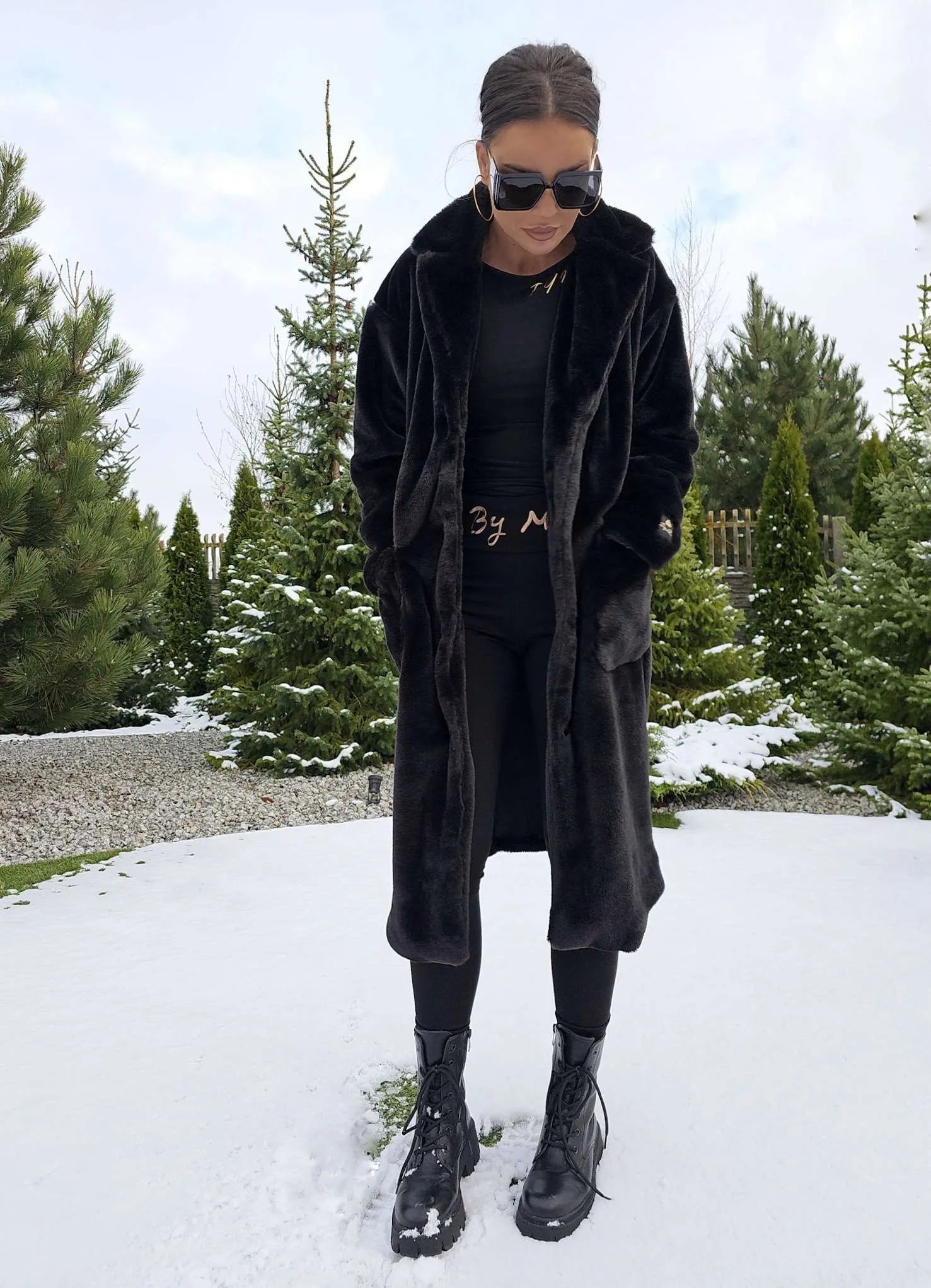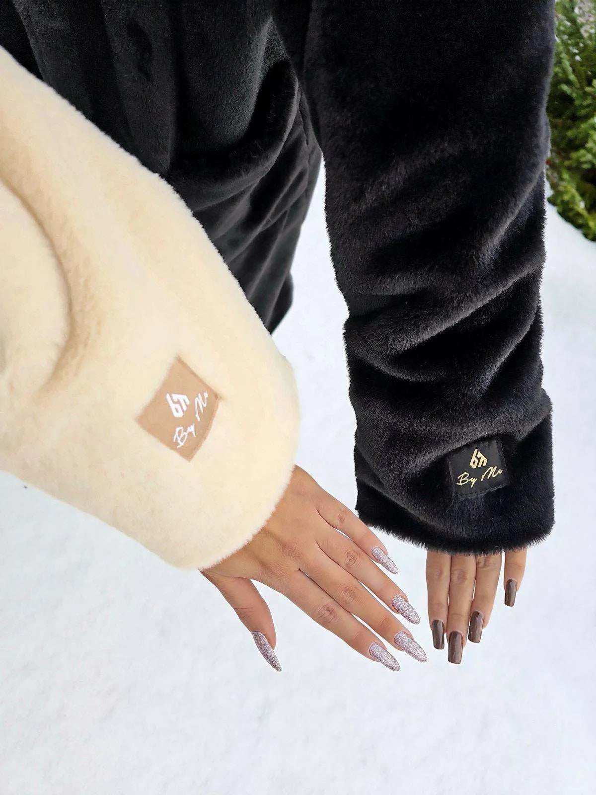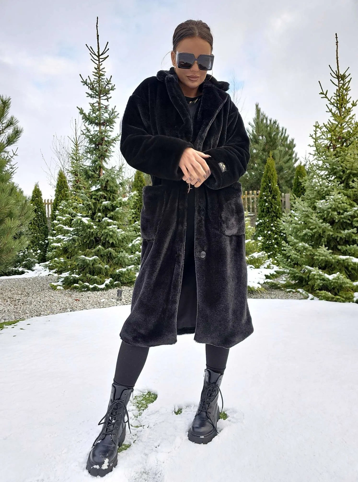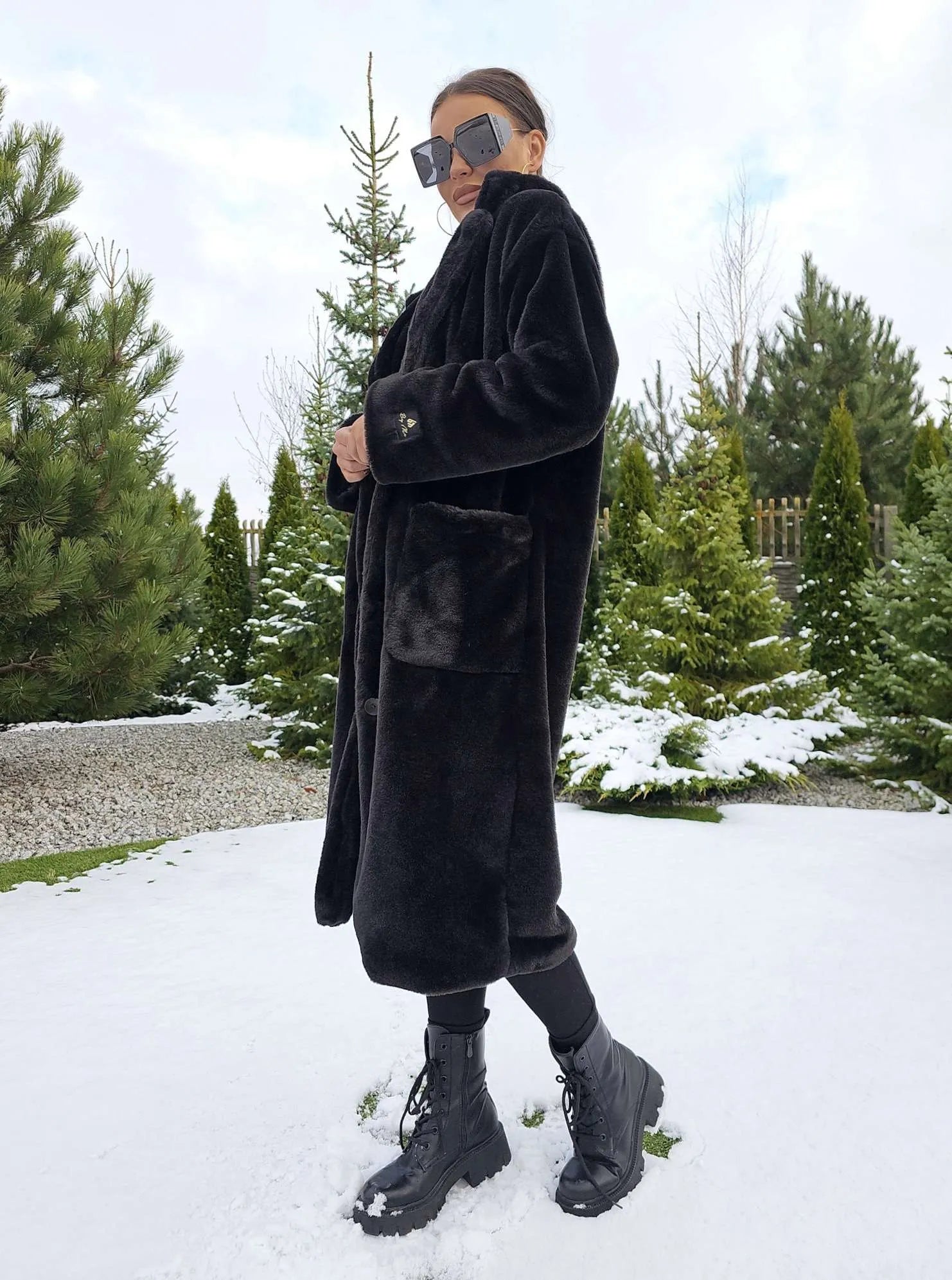 Lange Teddy- Mantel mit Zwei große Taschen vorne.