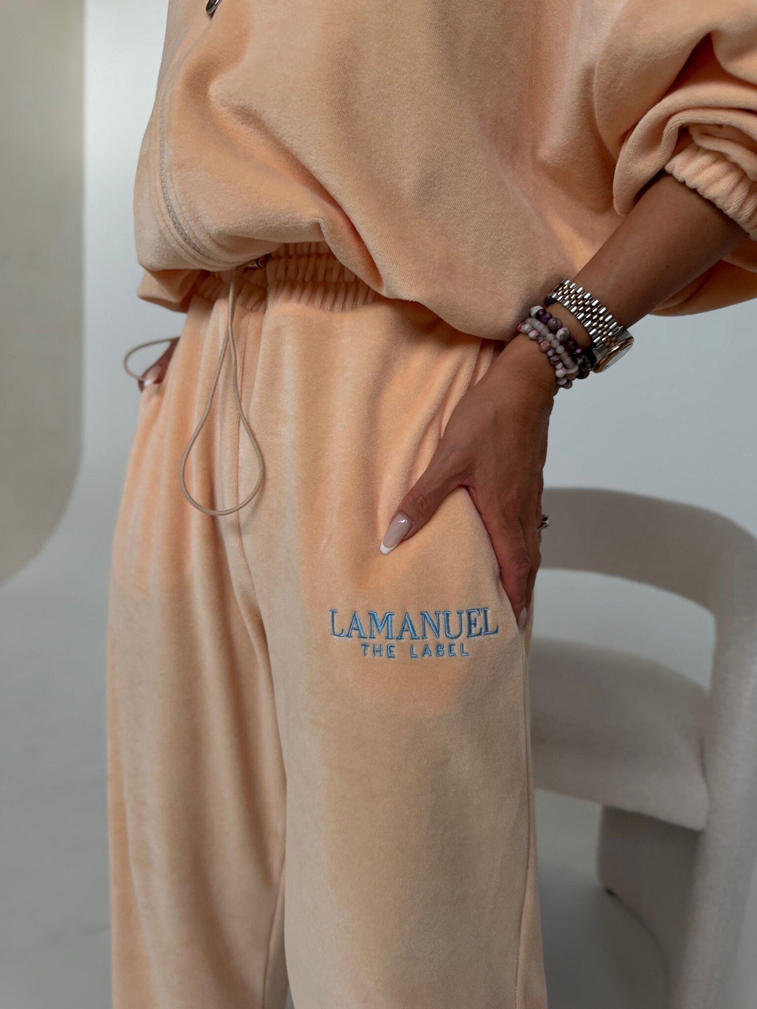 Lockere Jogginghose mit schmalem Schnitt und elastischem Besatz an Taille und Knöcheln. Auf der linken Seite gesticktes Lamanuel-Logo in einer kontrastierenden Farbe. Der Kordelzug an der Taille mit Riemen ermöglicht es Ihnen, sie perfekt an die Figur anzupassen. Lässig, das sieht überhaupt nicht gewöhnlich aus. Obwohl die Hose weit ist, passt sie perfekt ab Größe XS-L.