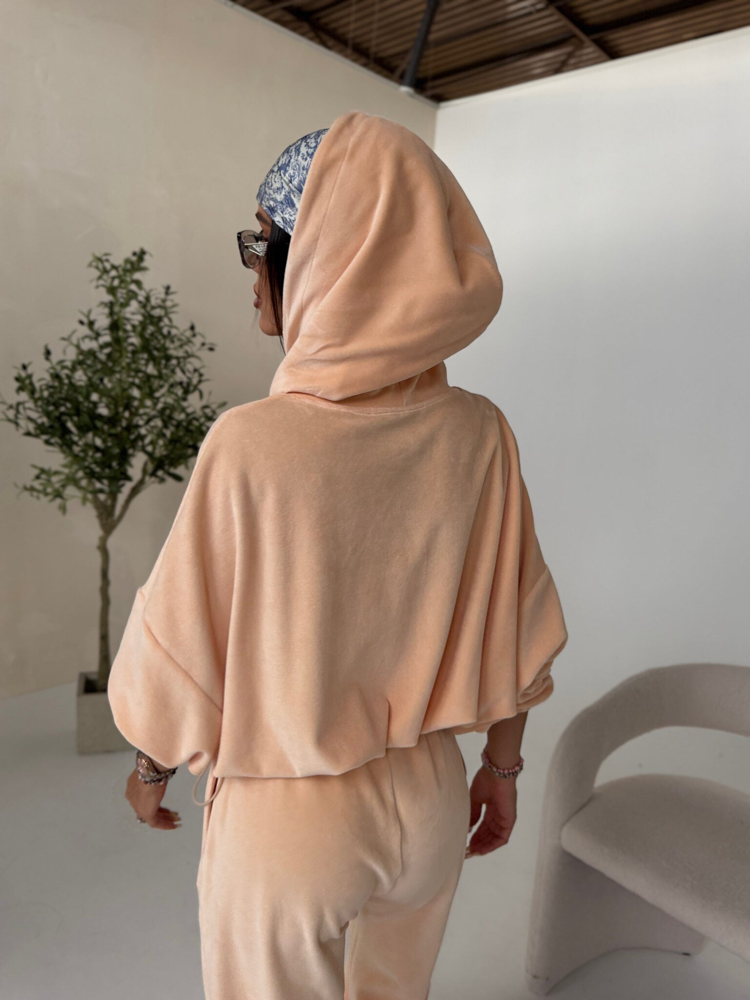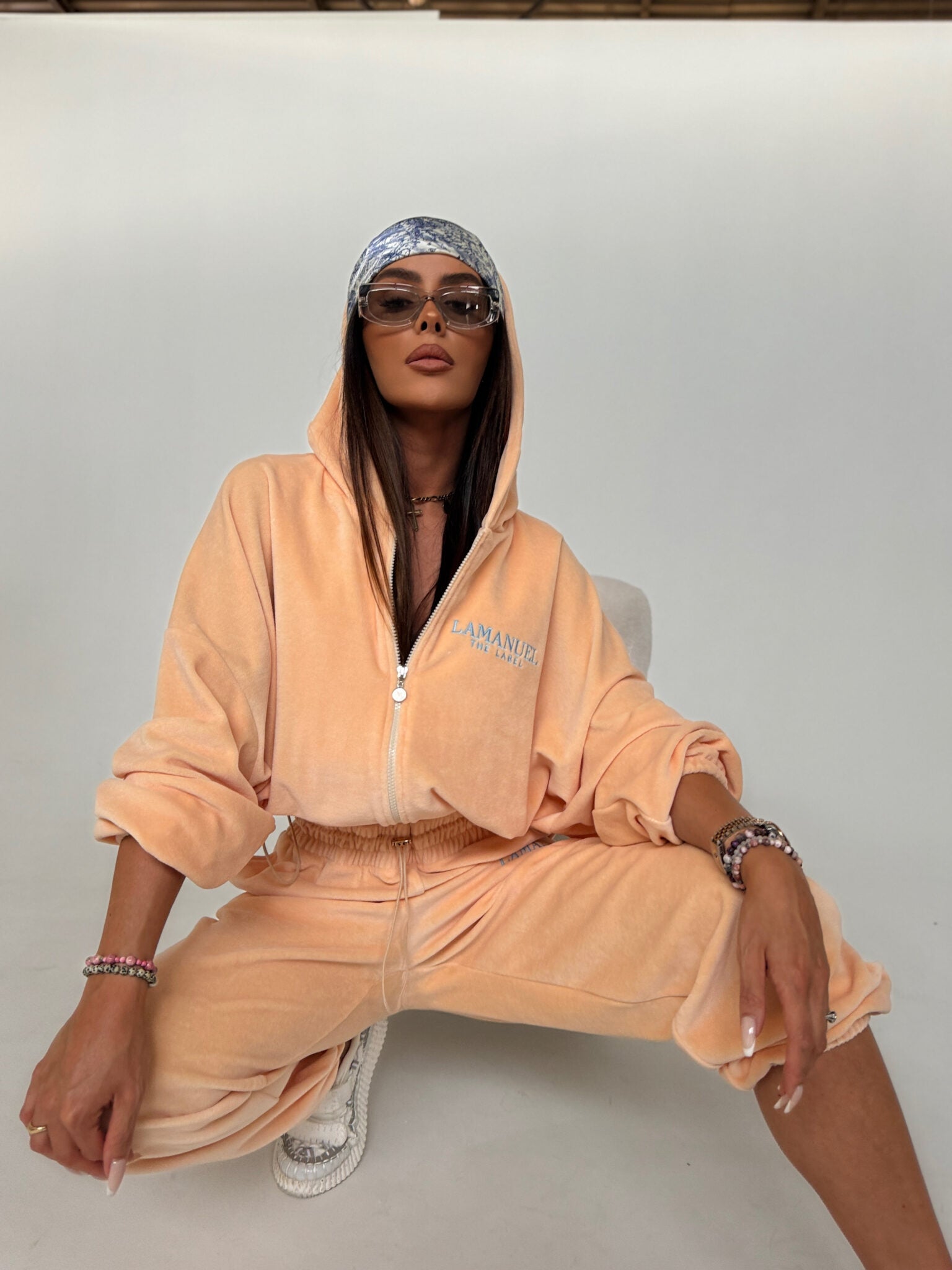 Übergrößer Hoodie aus weichem, Plüschstrick mit einer flauschigen Struktur. Mit einem Reißverschluss befestigt, mit breiten Ärmeln, die mit einer Welle versehen sind, und einer klaren Stickerei mit dem Lamanuel-Logo auf der Brust. Das Unterteil ist mit ein paar verstellbar, dank denen Sie es sowohl locker als auch taillierter an der Taille tragen können. Bequem, aber mit Charakter - perfekt für urbane und alltägliche Stile. Das Sweatshirt passt von Größe XS bis XL.