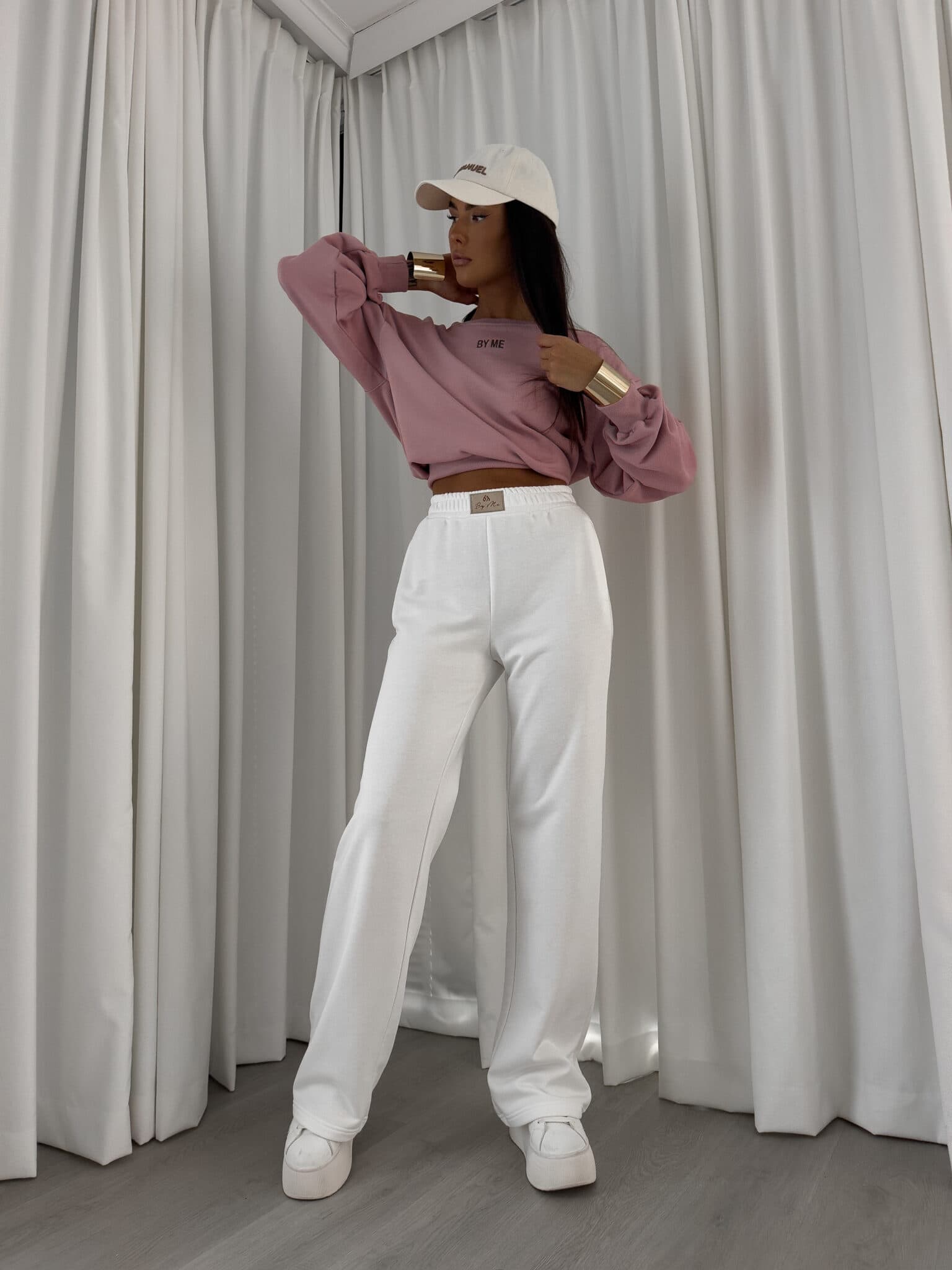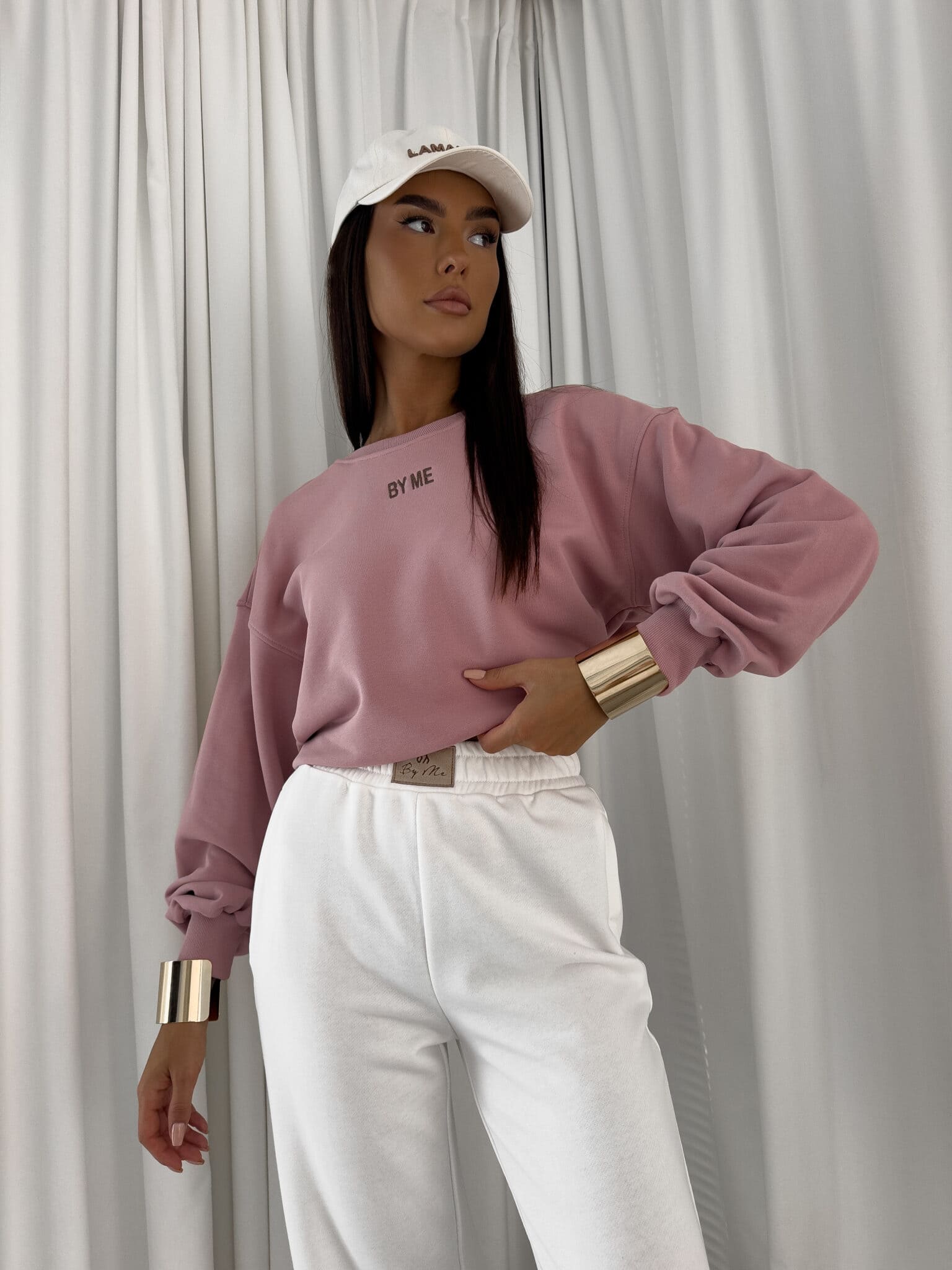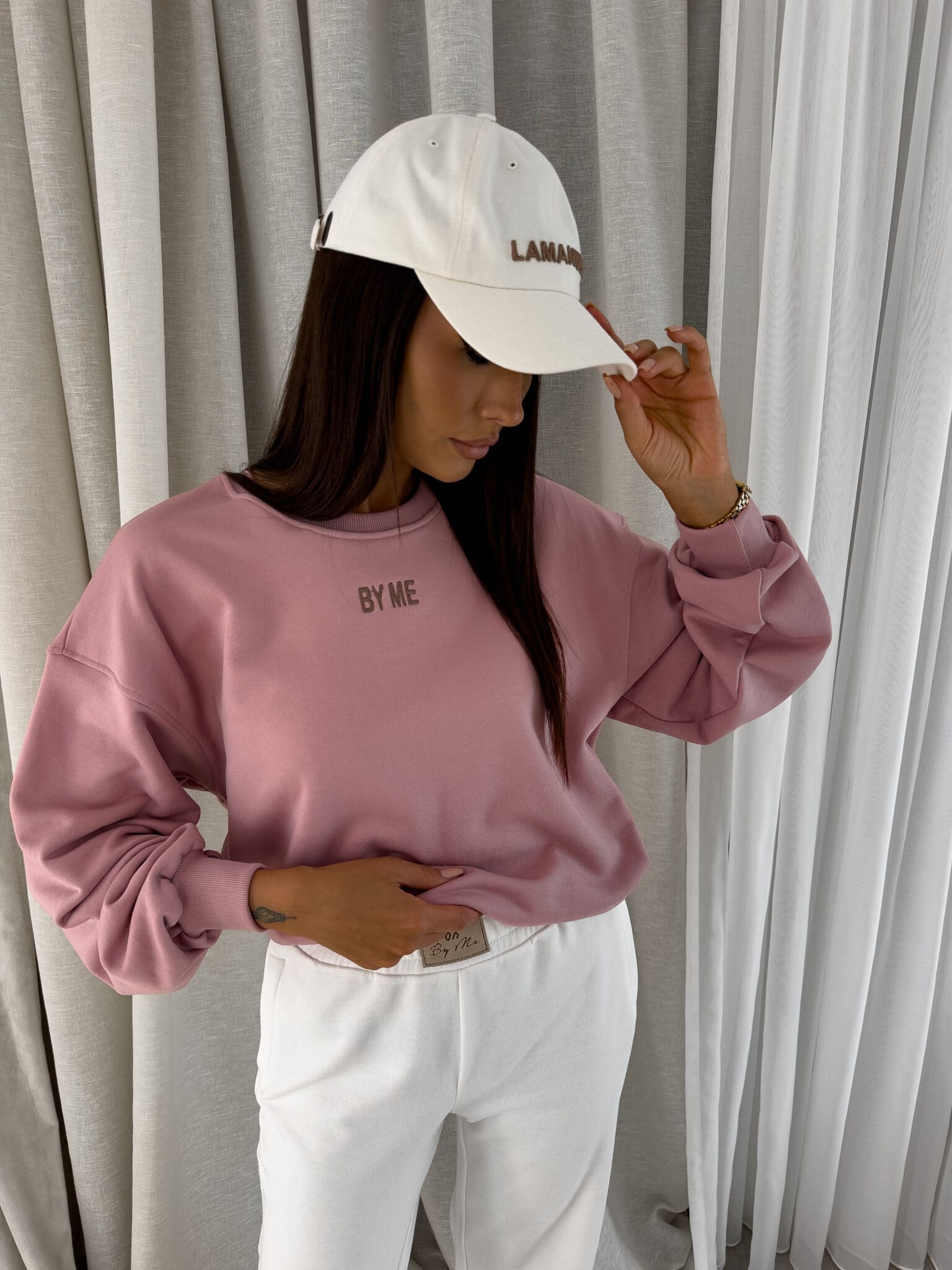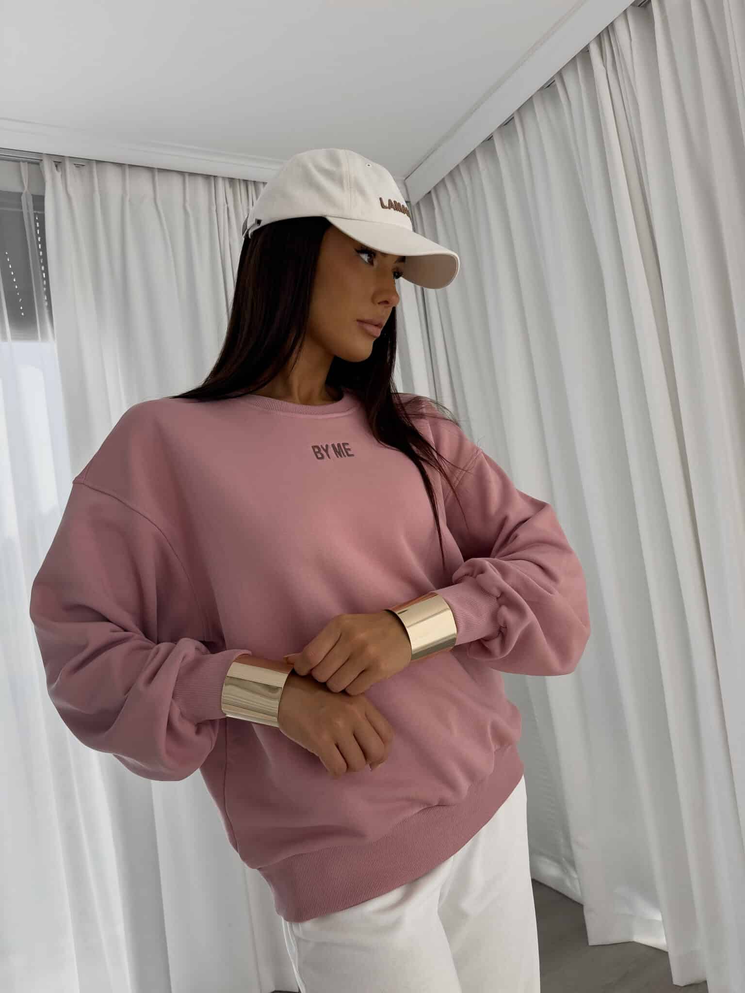 Locker geschnittenes Sweatshirt aus weicher Baumwolle. Über dem Kopf anziehen, lange Ärmel sorgen für Komfort. Perfekt für jeden Tag - für Jeans, Trainingsanzüge oder Shorts. Die minimalistische Inschrift "BY ME" in der Mitte des Ausschnitts.