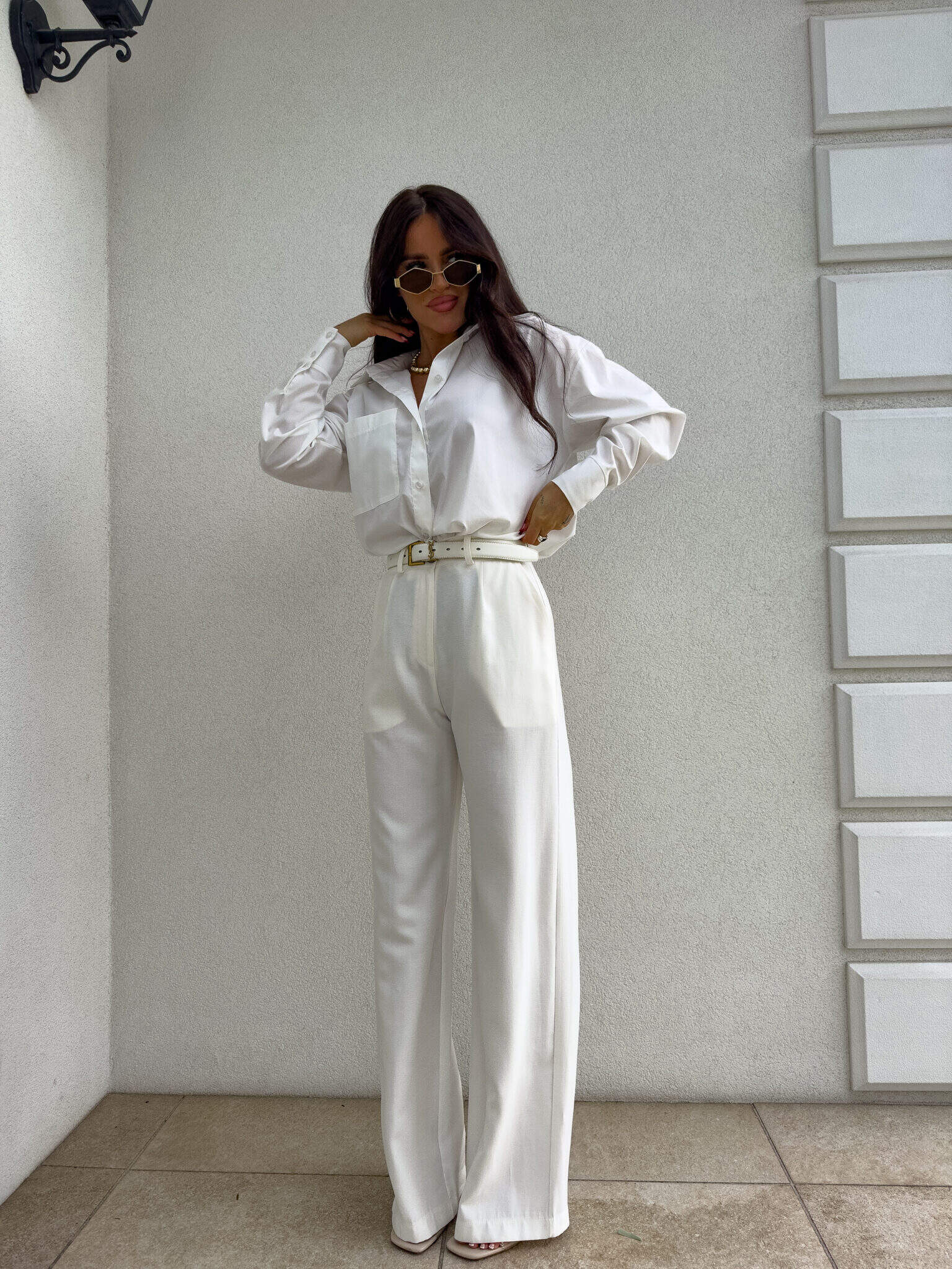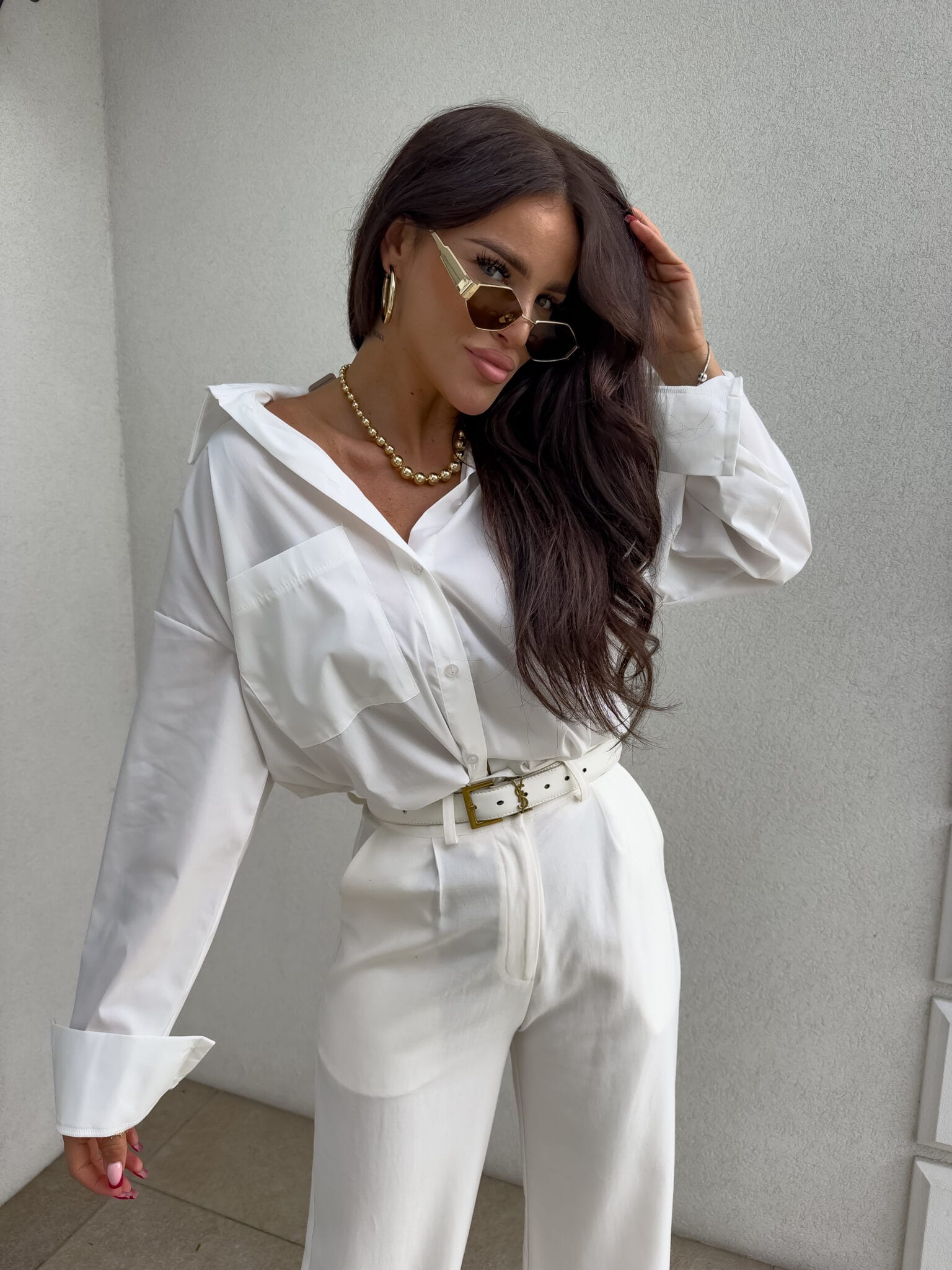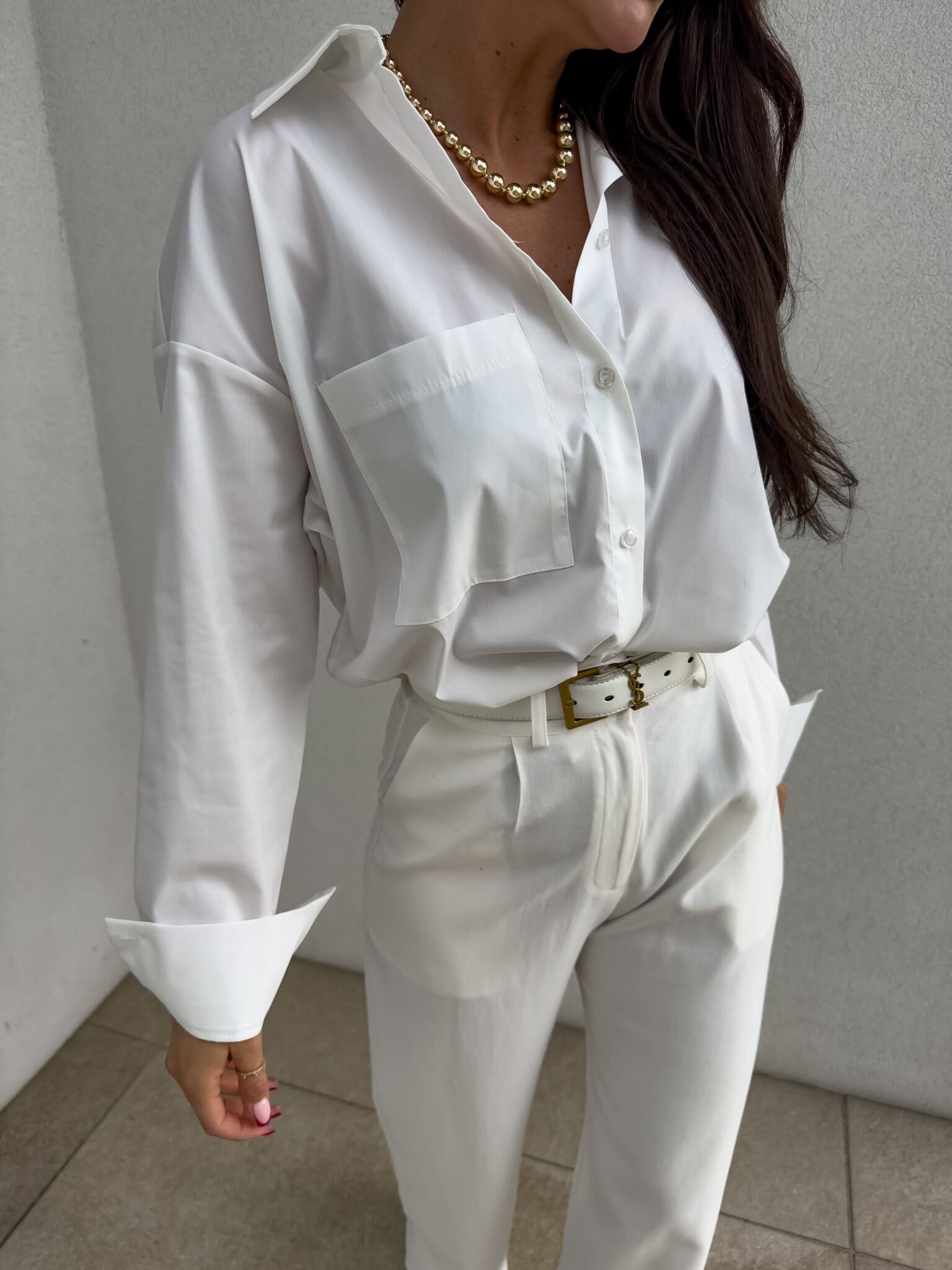 Das Over-Shirt zeichnet sich durch einen lockeren Schnitt und einen verstellbaren Knopfverschluss und eine spektakuläre Tasche auf einer Seite aus.