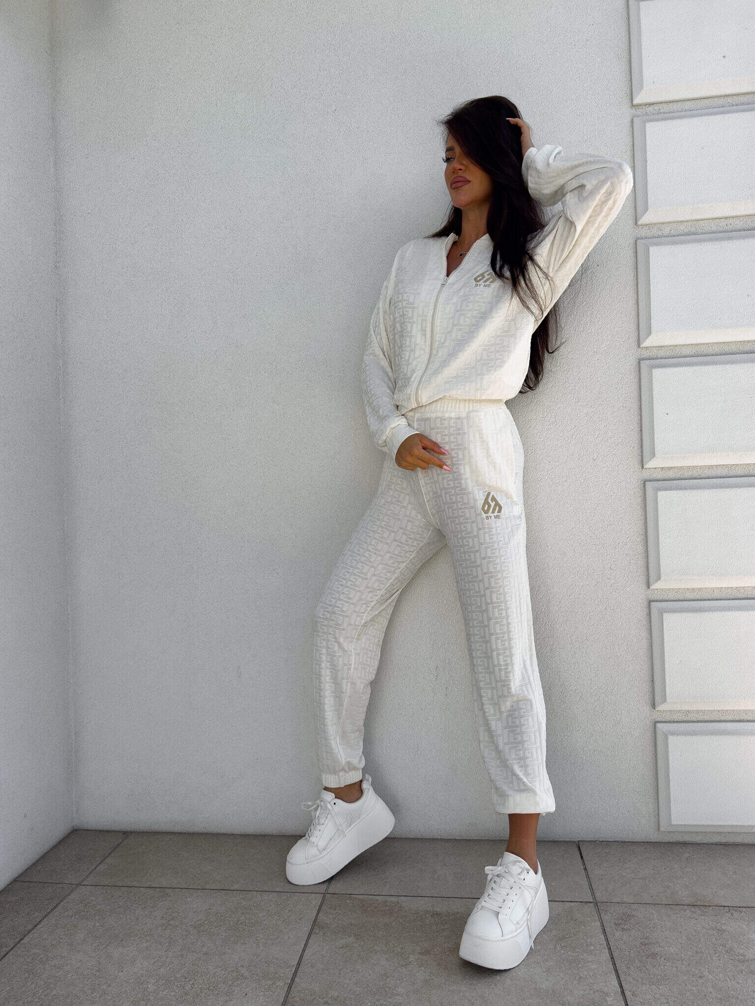 Das Artemis-Set besteht aus einem abgeknöpften Sweatshirt und einer Hose mit elastischem Bund und Beinen, die für eine perfekte Passform und Bewegungsfreiheit sorgen. Das Sweatshirt ist mit einem praktischen Reißverschluss ausgestattet, und die Hose hat zwei funktionale Taschen, die die notwendigen Kleinigkeiten aufnehmen. Das Ganze zeichnet sich durch dezente gestickte Baumstämme aus.