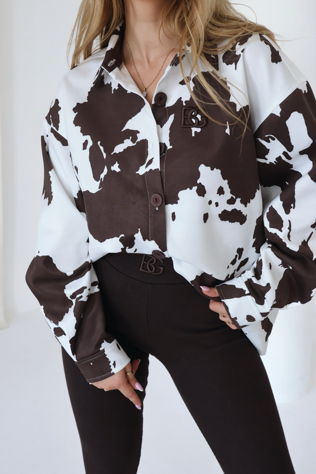 Produktbeschreibung: Damenhemd BG MUU aus Wildleder. Mit Knöpfen befestigt. BG-Markenlogo auf dem Herzen.