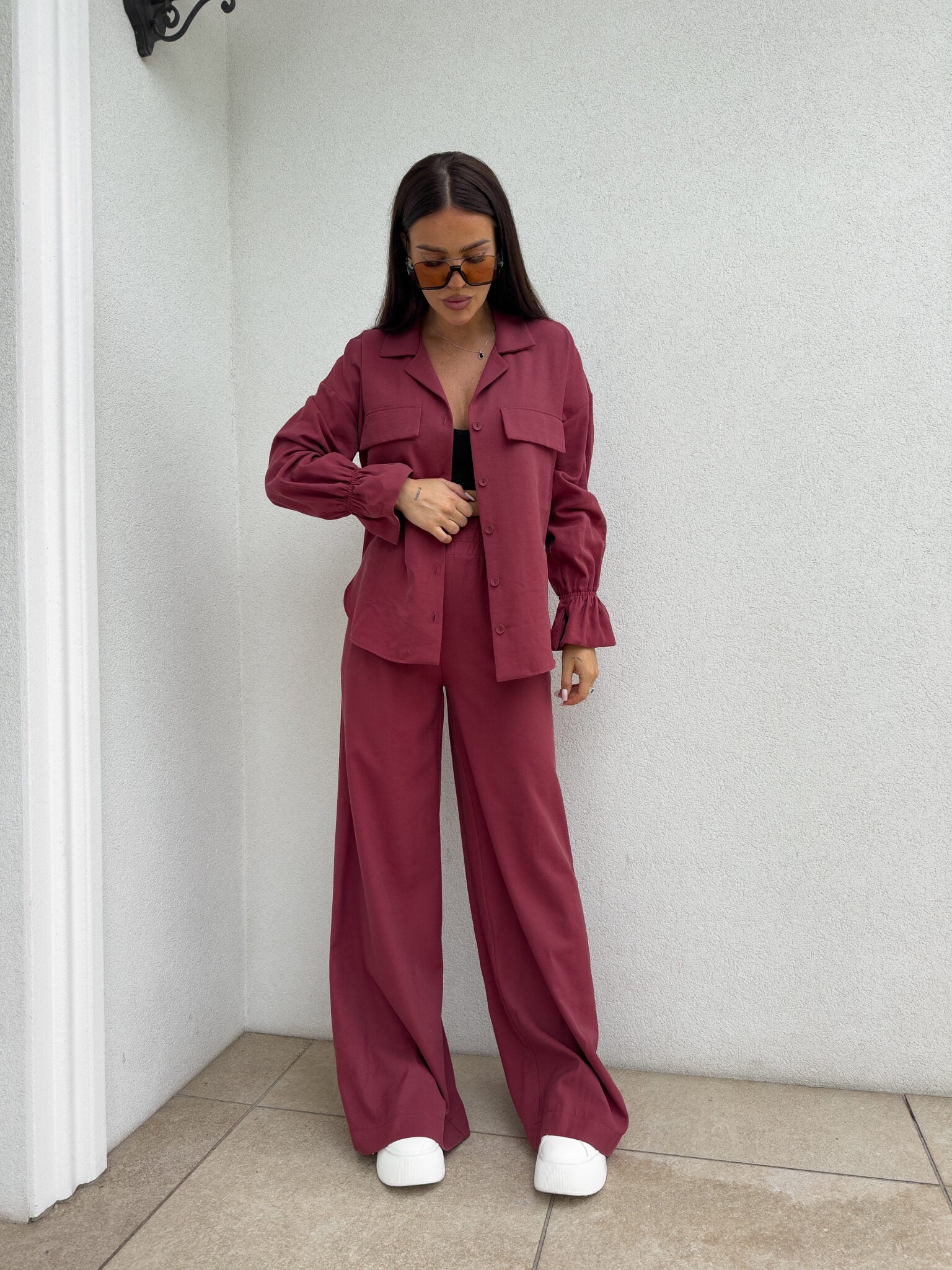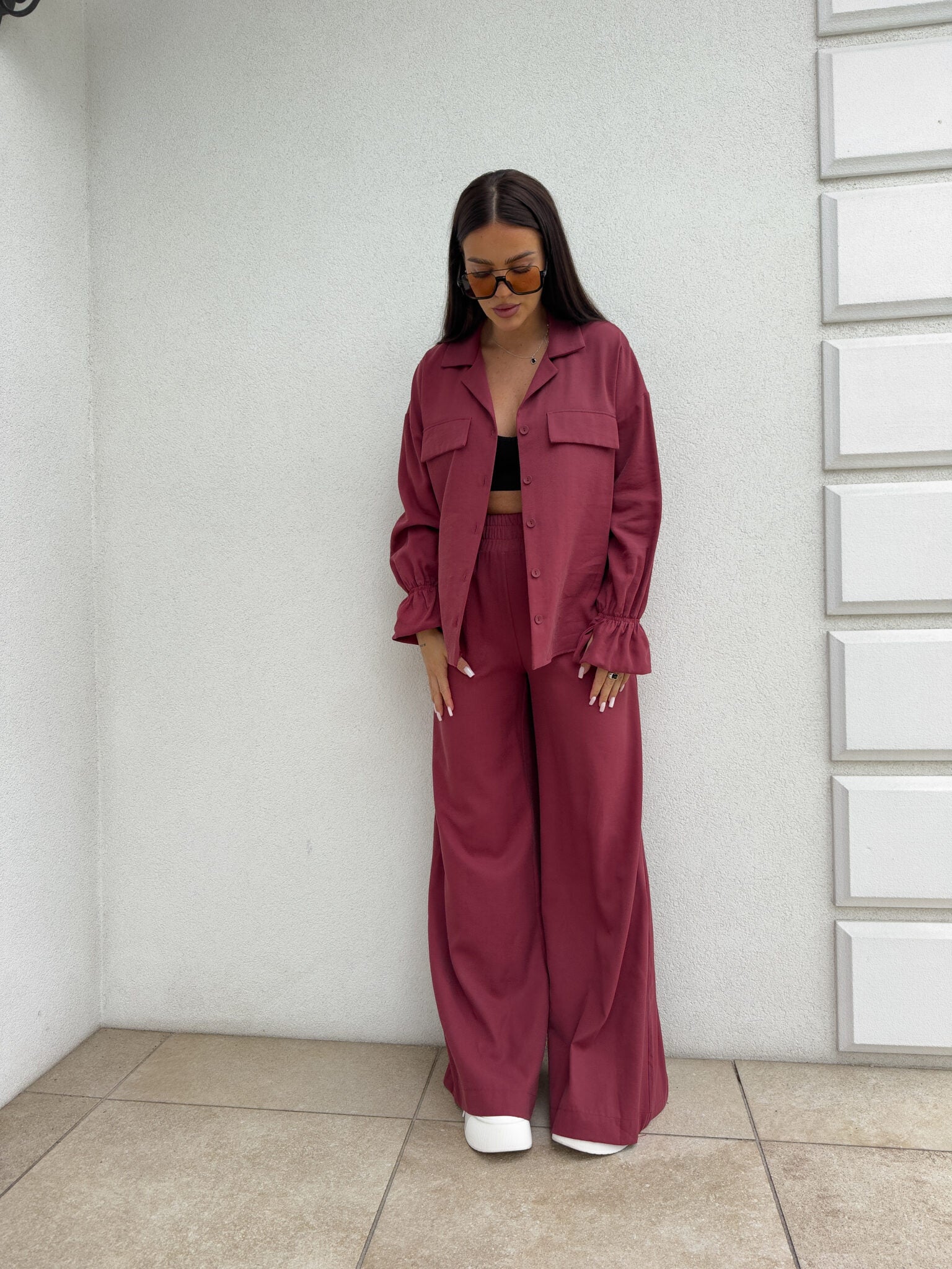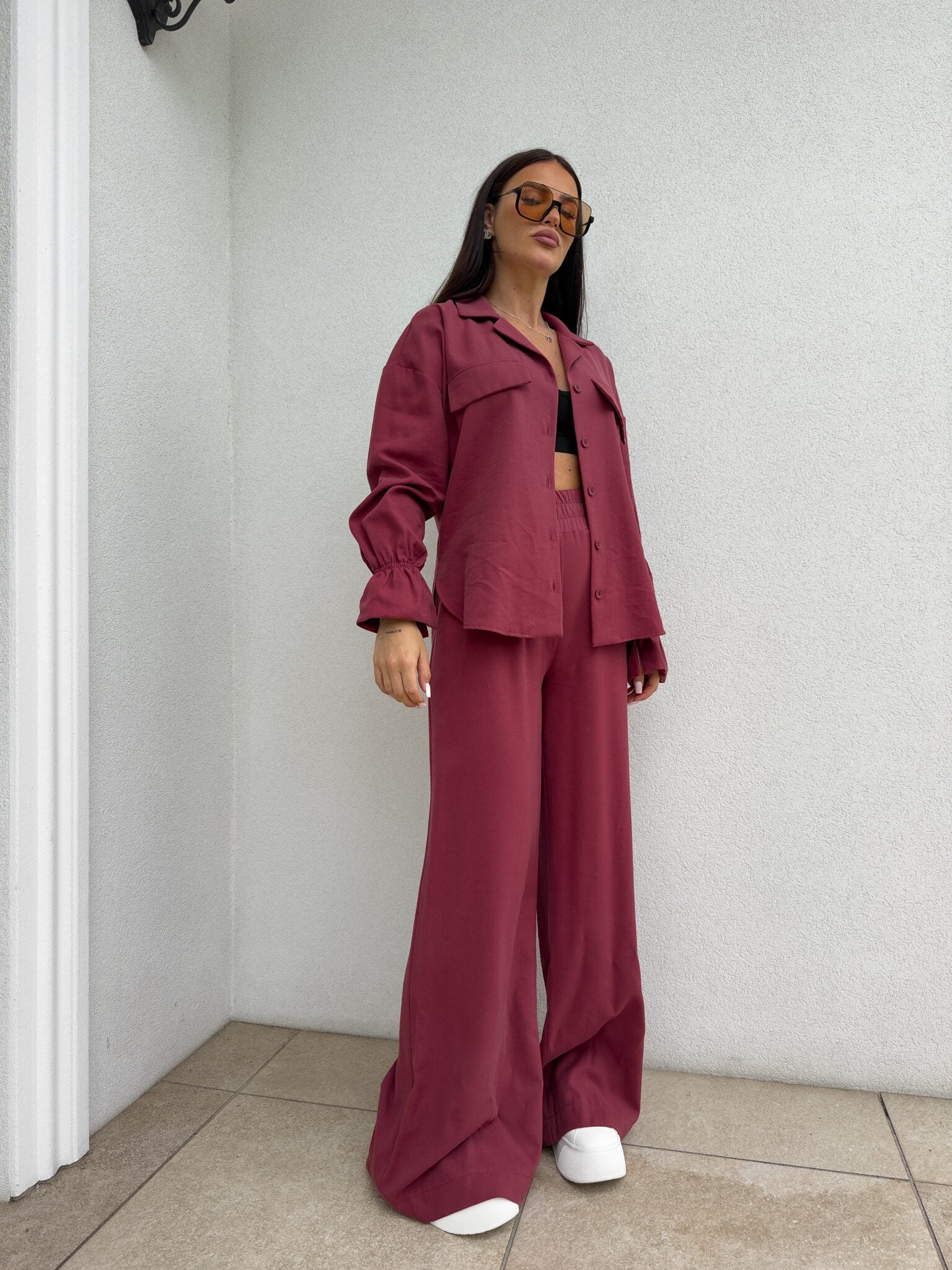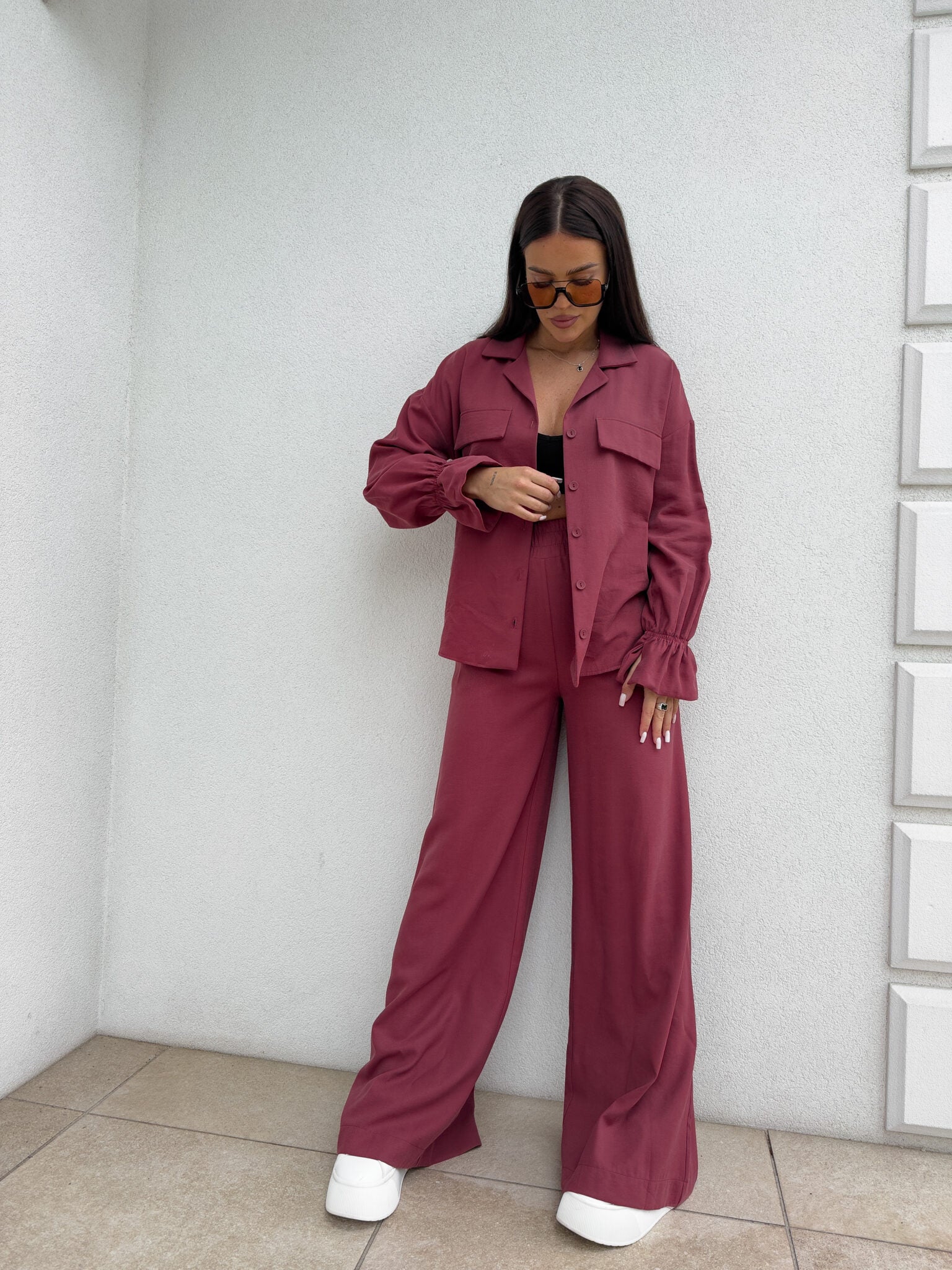 Stilvolles Hemd mit lässigem Oversize-Schnitt, befestigt mit Knöpfen. Der klassische, umklappbare Kragen verleiht die ganze Eleganz, zwei symmetrische Taschen mit Klappen auf Brusthöhe. Lange Ärmel mit breiten Bündchen mit dekorativen Rüschen.