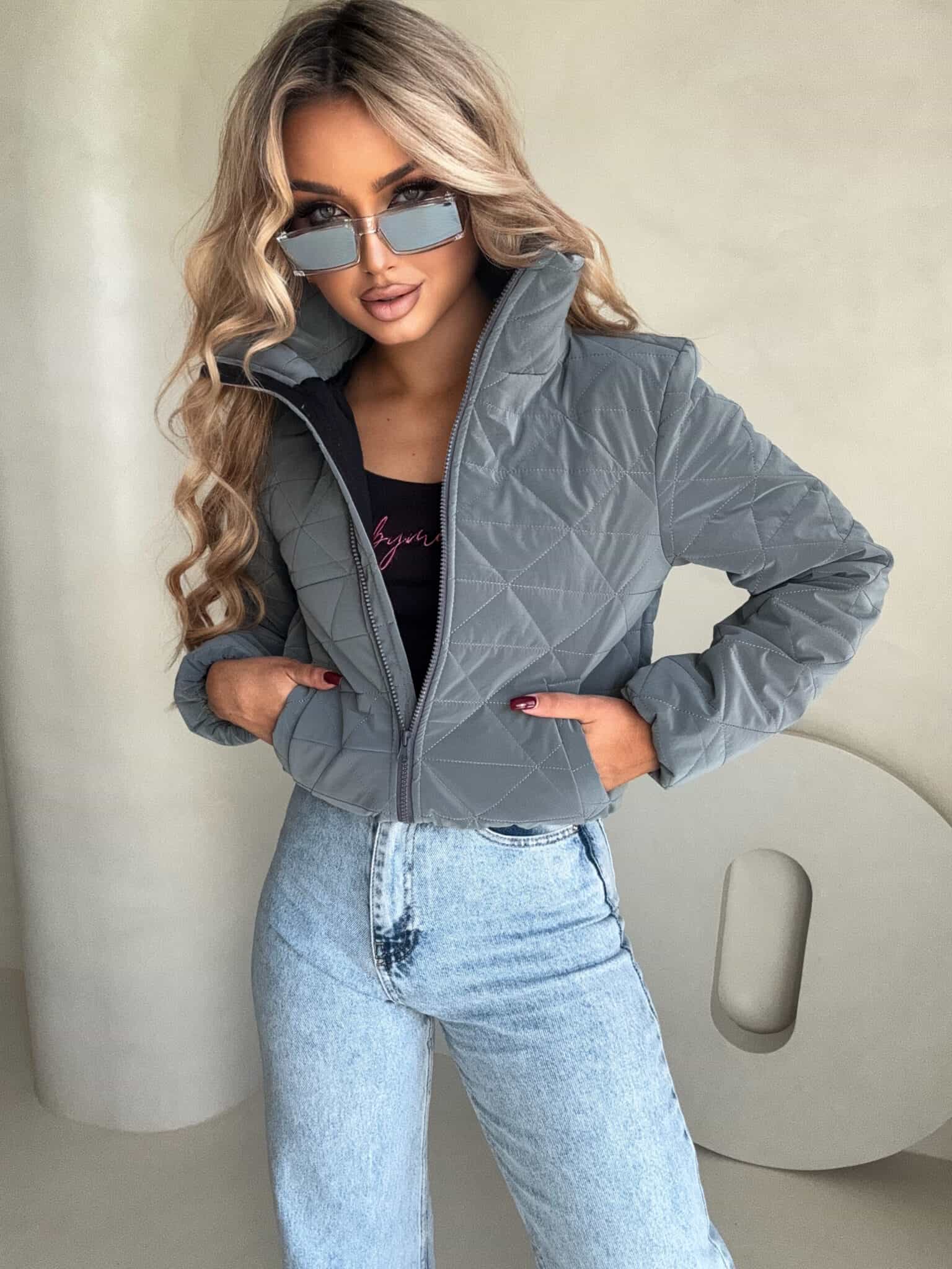 Mit einem Reißverschluss befestigt. Das Modell ist mit einem Stehkragen, Taschen und einem Kordelzug an der Unterseite ausgestattet, mit dem Sie die Länge anpassen und die Figur anpassen können. Melden Sie sich auf der Rückseite an.