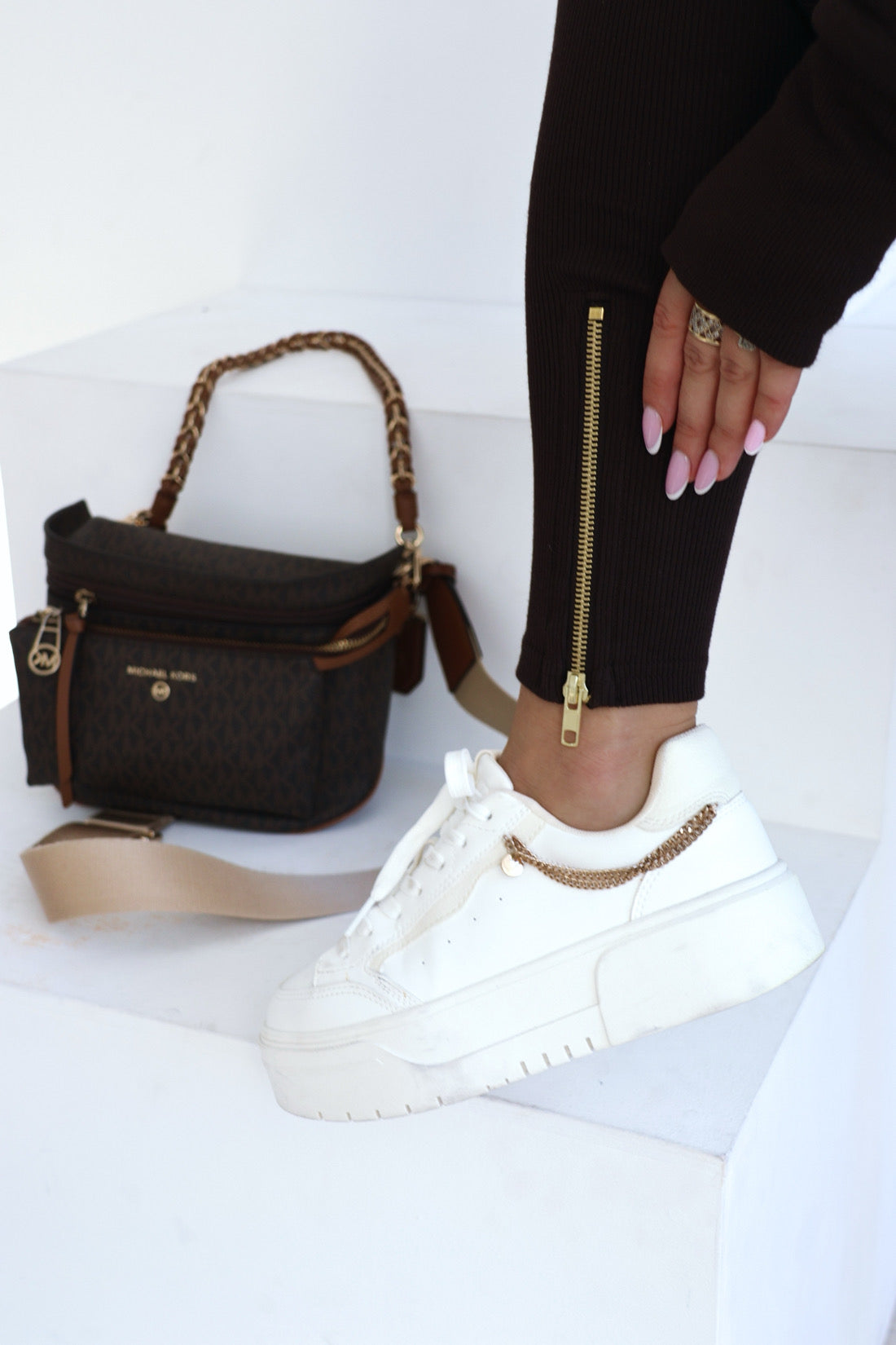 Produktbeschreibung: BG GODDESS Leggings aus hochwertiger Baumwolle. Leggings mit sehr hoher Taille, breitem Gummizug, Logo mit einem goldenen BG-Logo in der Mitte des Riemens. Darüber hinaus haben die Leggings dekorative goldene Reißverschlüsse an der Unterseite des Beins.