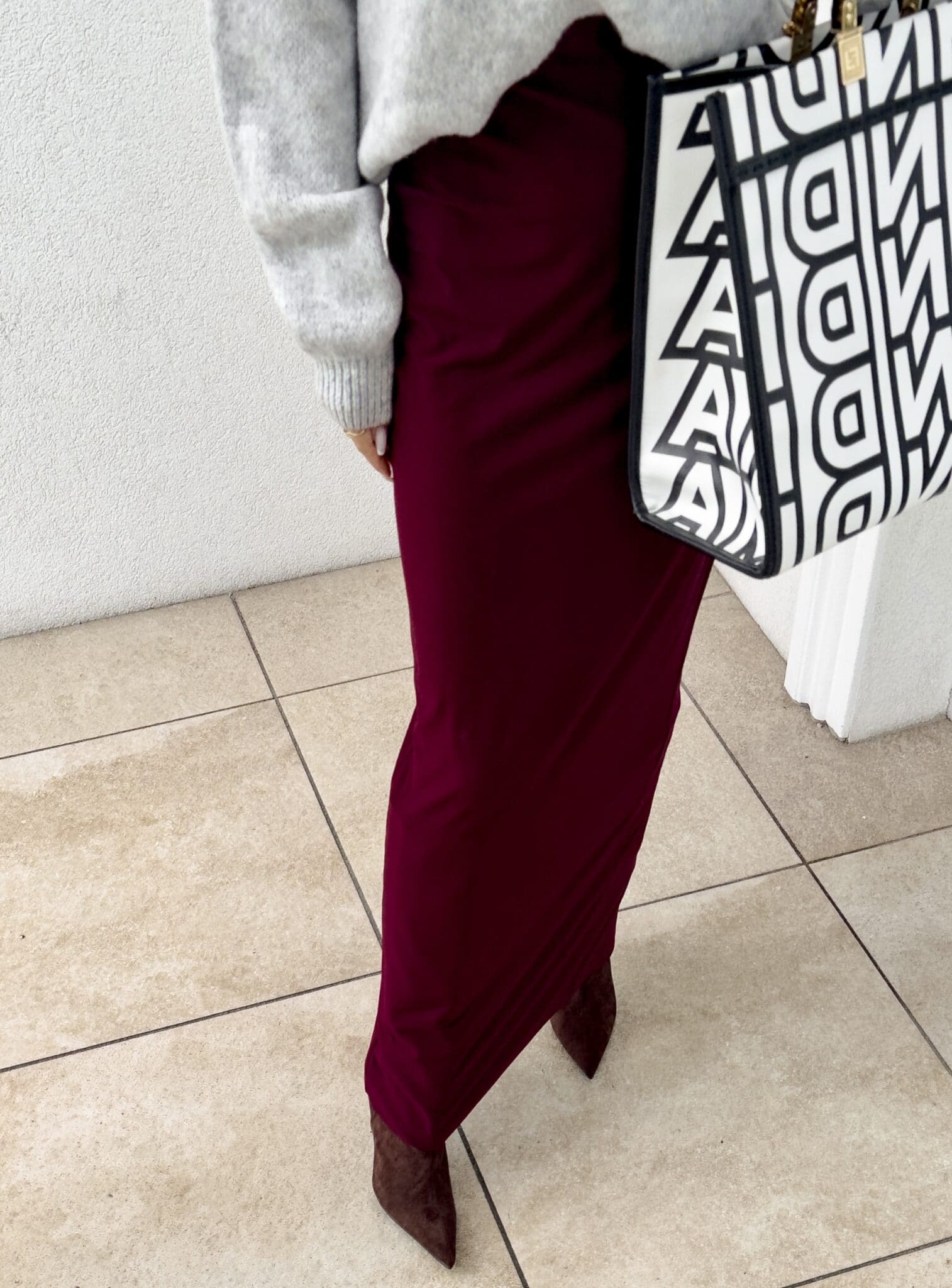 Ein klassischer Maxirock mit einem Schlitz auf der Rückseite ist ein eleganter Vorschlag für Frauen, die Wert auf Stil und Komfort legen. Hergestellt aus hochwertigem Material, passt es perfekt auf die Figur und betont seine Vorteile. Die Länge des Maxi verleiht ihm einen zeitlosen Charakter, und der subtile Schlitz auf der Rückseite verleiht Sinnlichkeit und erleichtert die freie Bewegung. Perfekt sowohl für den Alltag als auch für formellere Anlässe - es passt gut zu einem Hemd, einem Pullover oder einem taillierten Oberteil.