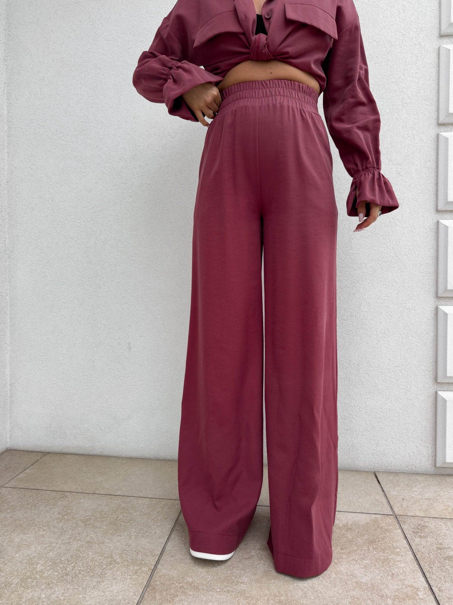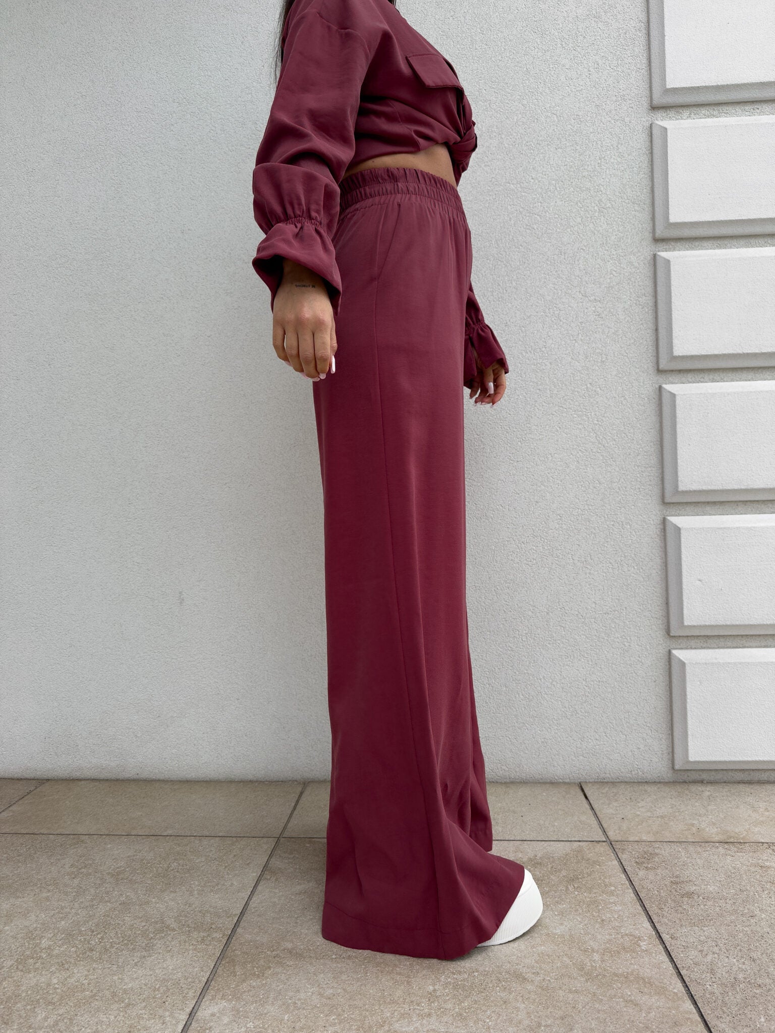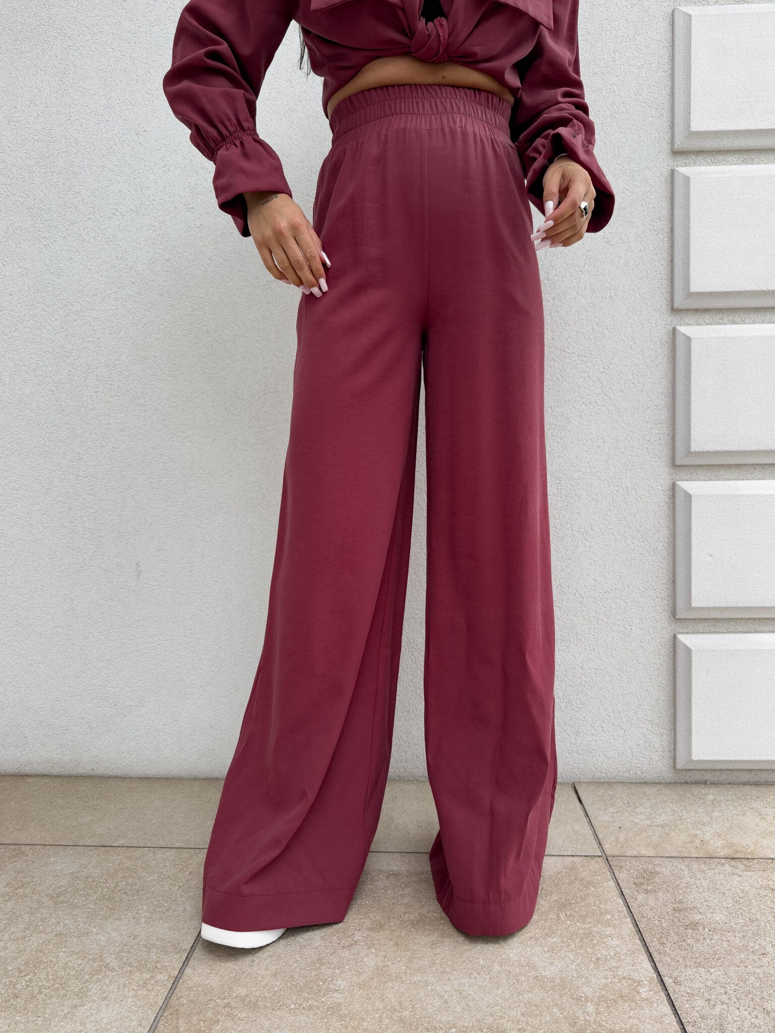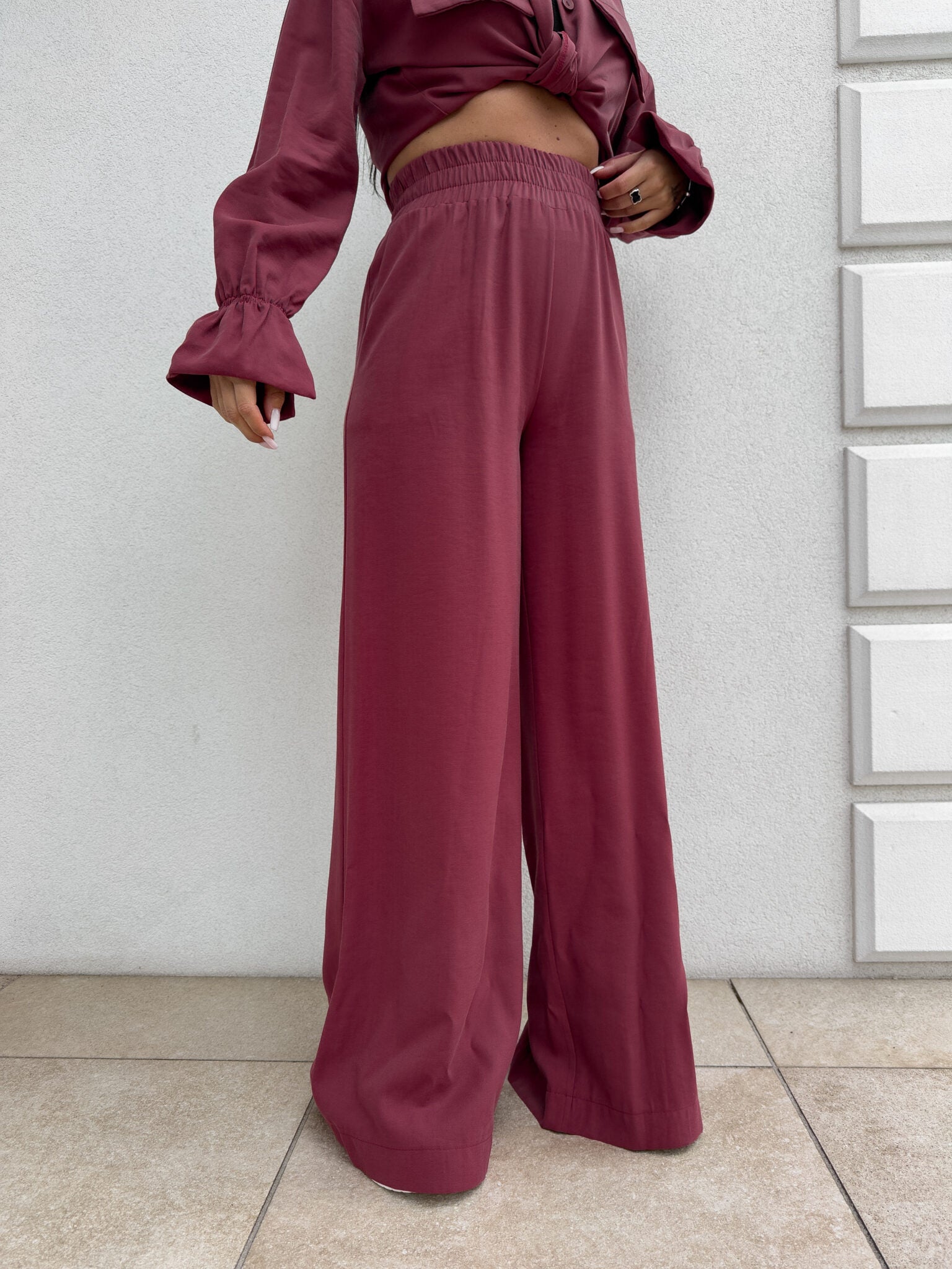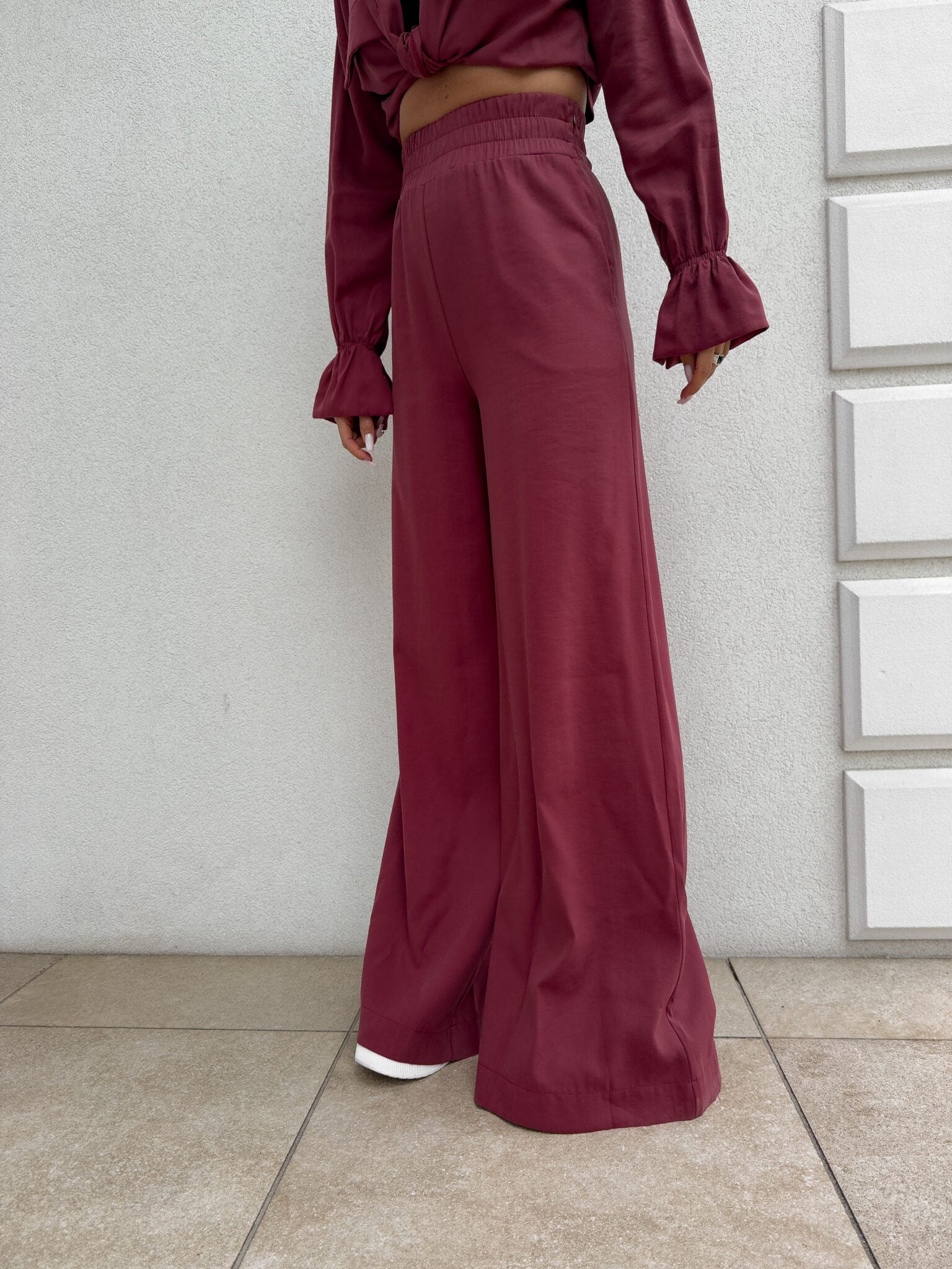 SZWEDY Hosen sind lockere Hosen mit hoher Taille. Die Hose hat breite Beine und besteht aus leichtem, fließendem Material, das ihnen einen lässigen und bequemen Charakter verleiht. Es gibt ein Gummiband an der Taille, das den Tragekomfort weiter erhöht. Darüber hinaus wurde ein praktischer Reißverschluss verwendet, dank dem das An- und Ausziehen der Hose noch einfacher ist.