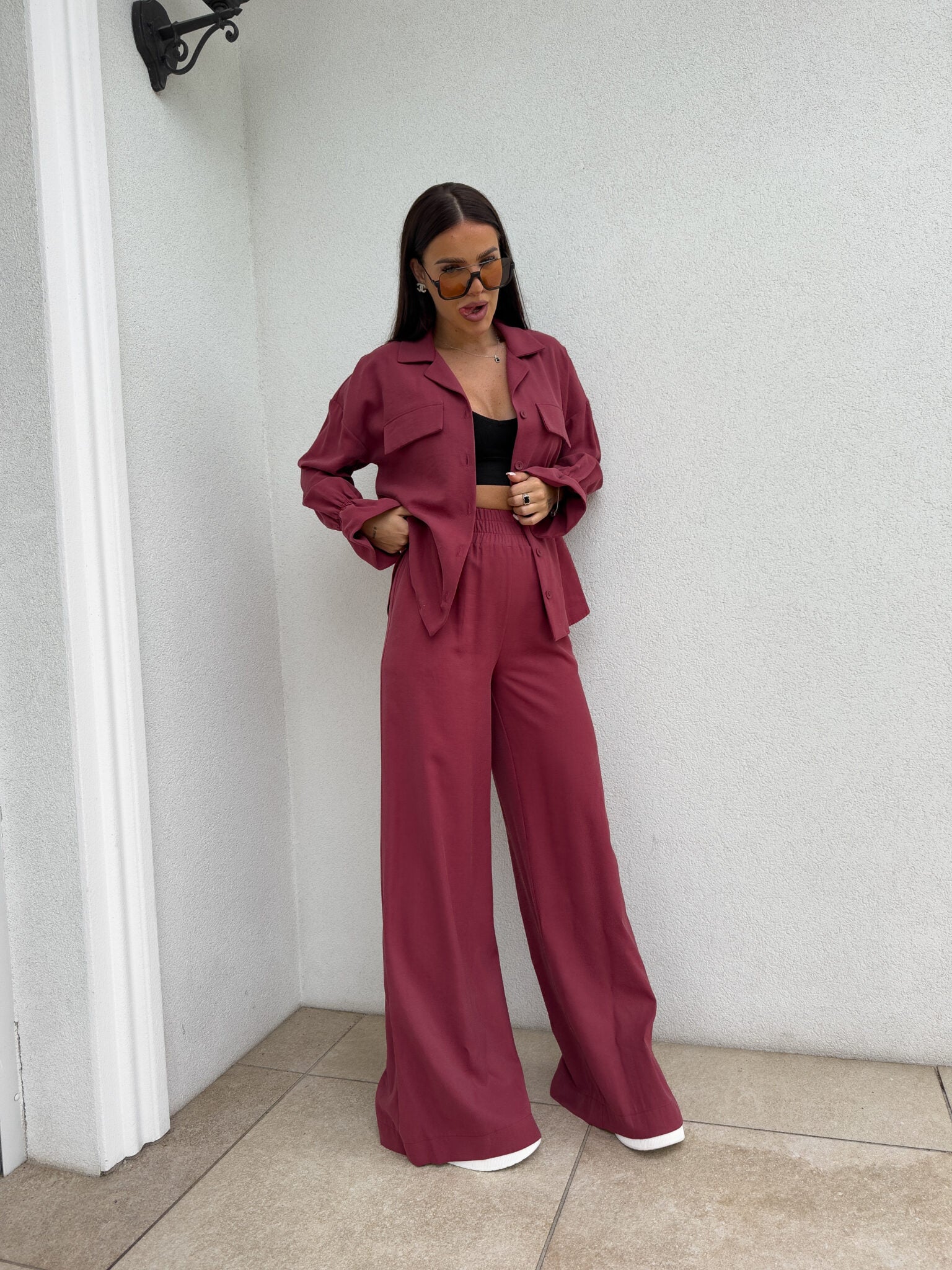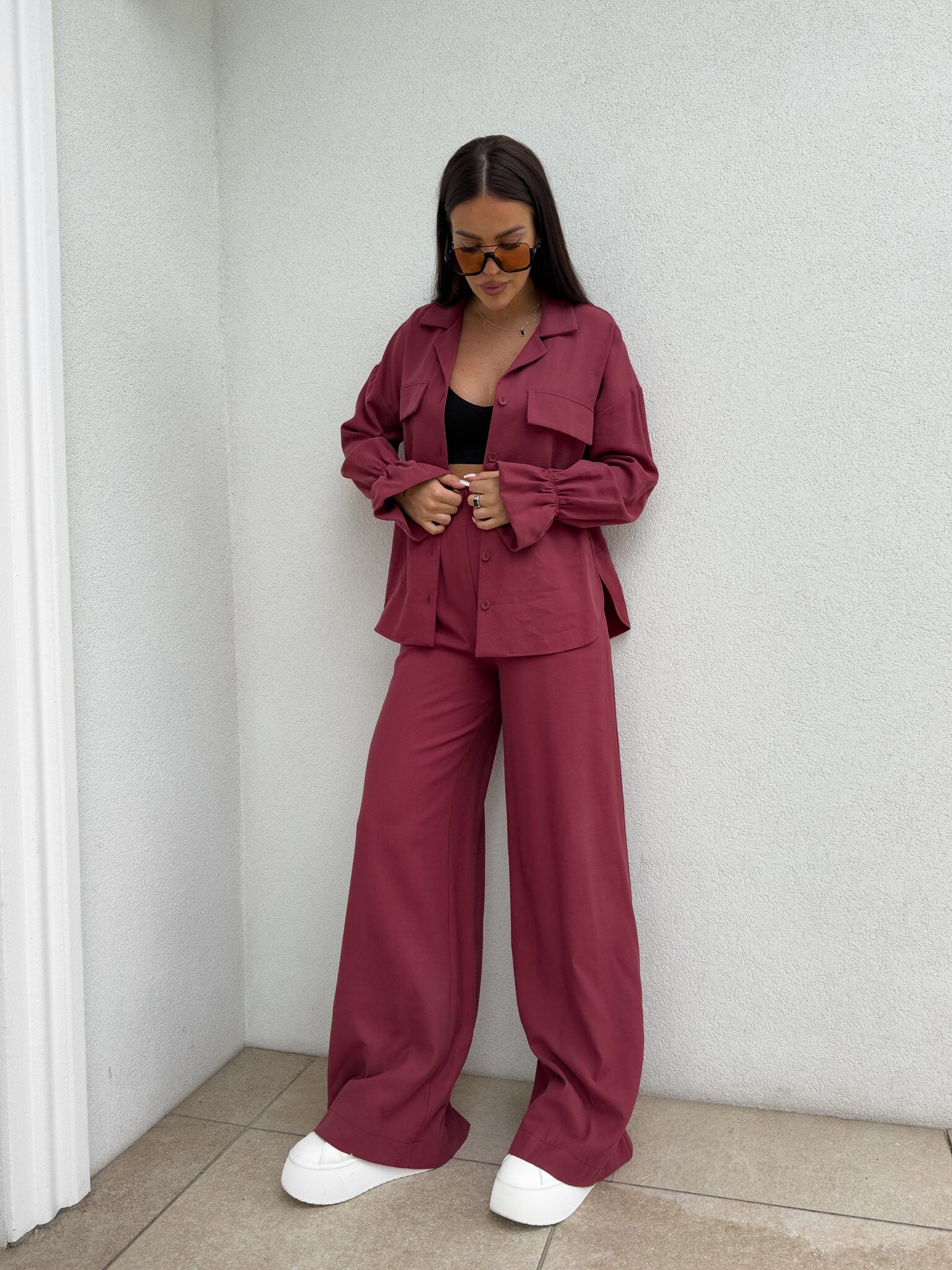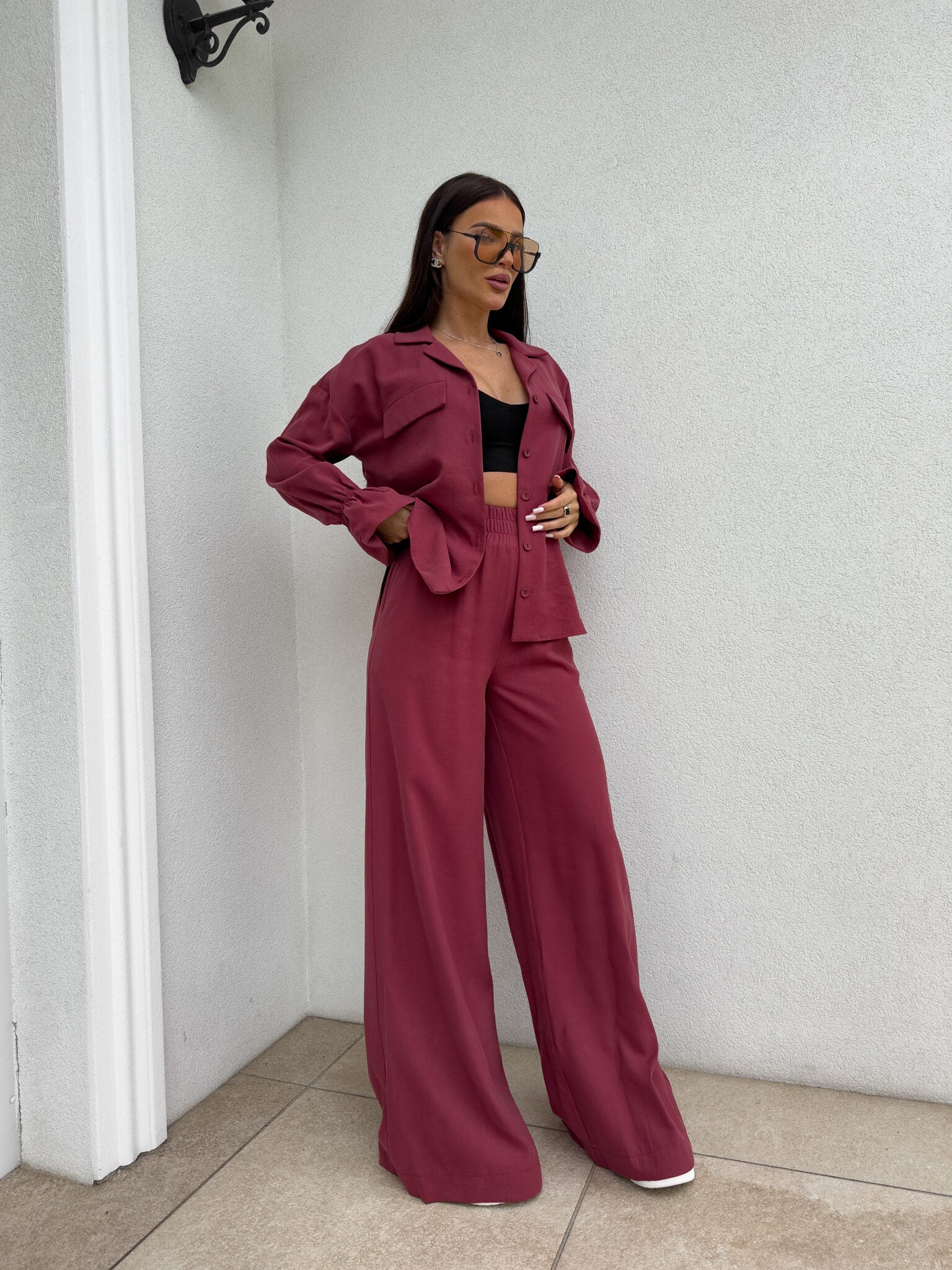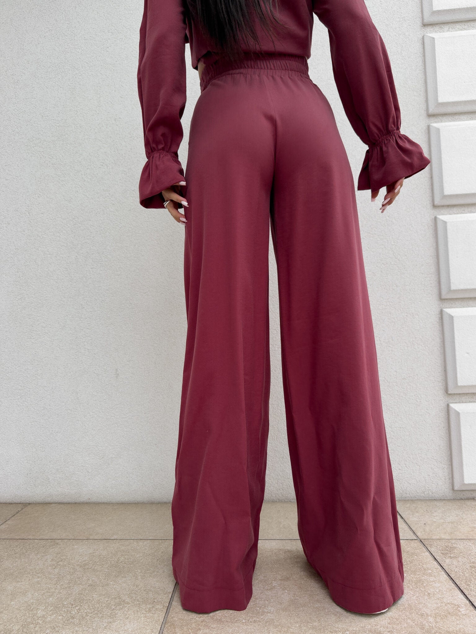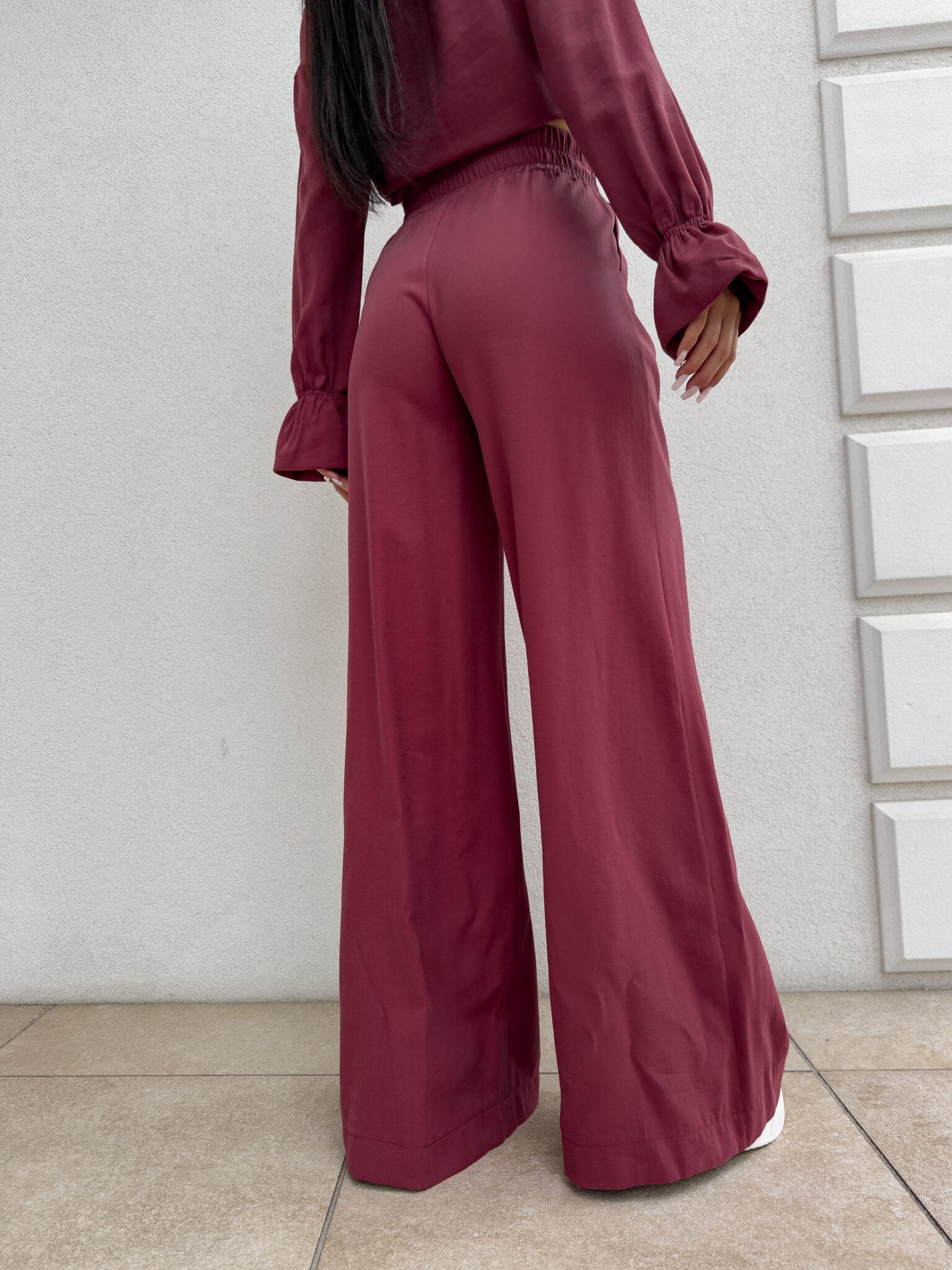 SZWEDY Hosen sind lockere Hosen mit hoher Taille. Die Hose hat breite Beine und besteht aus leichtem, fließendem Material, das ihnen einen lässigen und bequemen Charakter verleiht. Es gibt ein Gummiband an der Taille, das den Tragekomfort weiter erhöht. Darüber hinaus wurde ein praktischer Reißverschluss verwendet, dank dem das An- und Ausziehen der Hose noch einfacher ist.