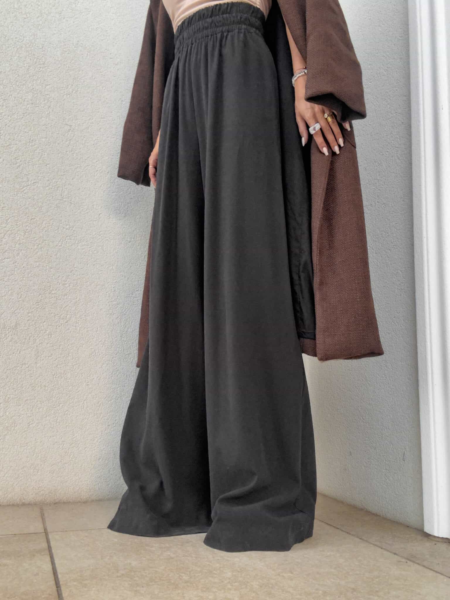 SZWEDY Hosen sind lockere Hosen mit hoher Taille. Die Hose hat breite Beine und besteht aus leichtem, fließendem Material, das ihnen einen lässigen und bequemen Charakter verleiht. Es gibt ein Gummiband an der Taille, das den Tragekomfort weiter erhöht. Darüber hinaus wurde ein praktischer Reißverschluss verwendet, dank dem das An- und Ausziehen der Hose noch einfacher ist.