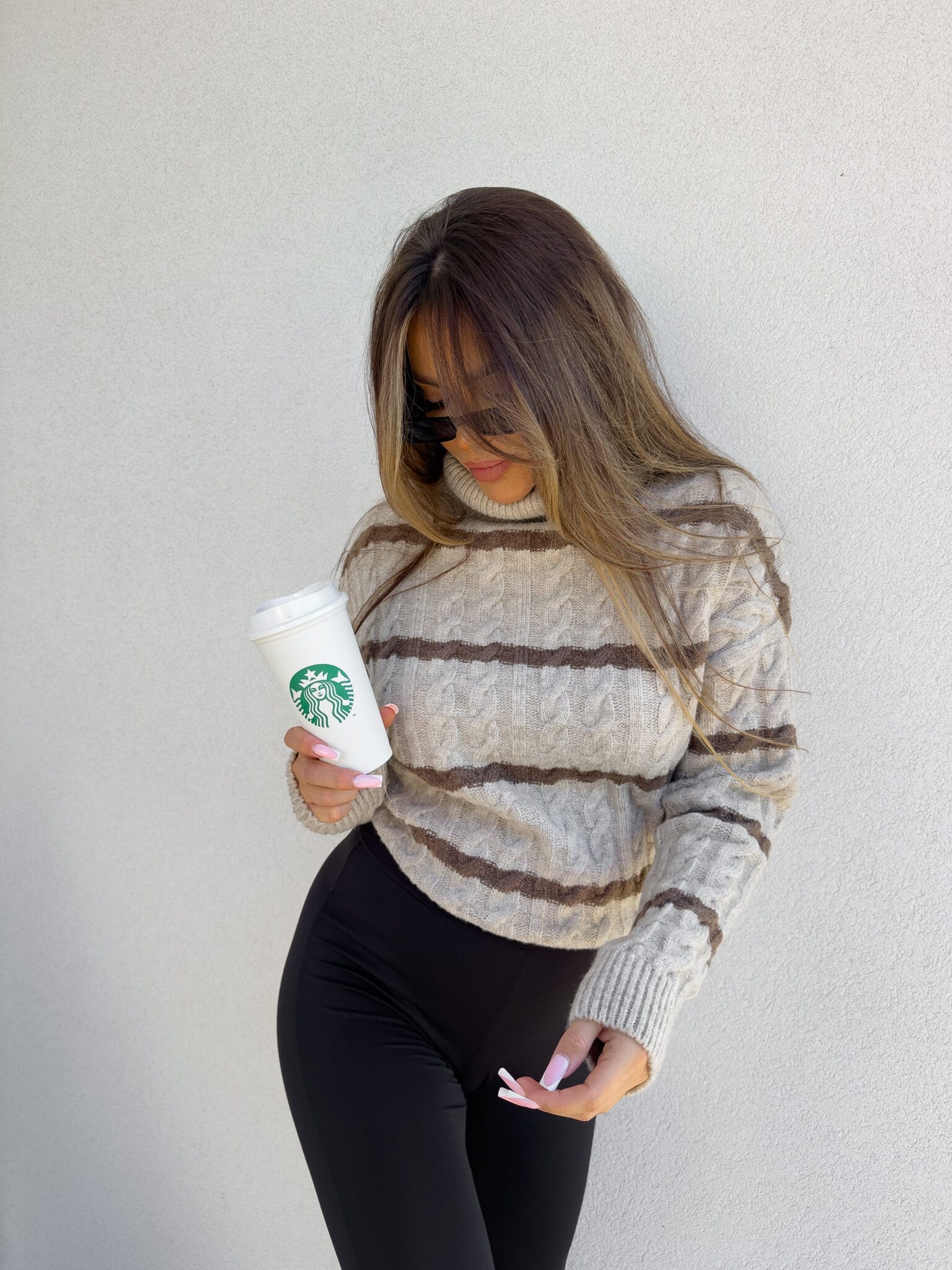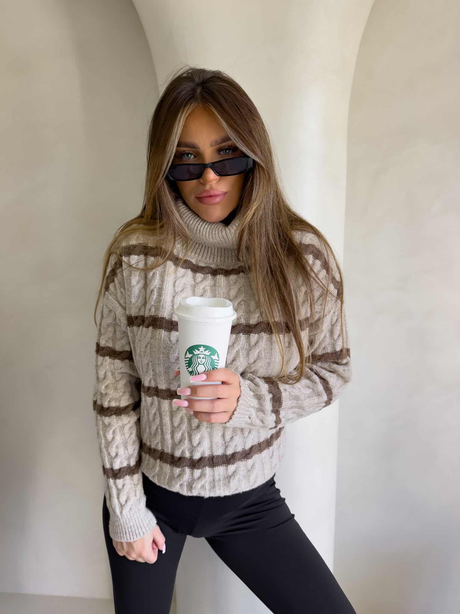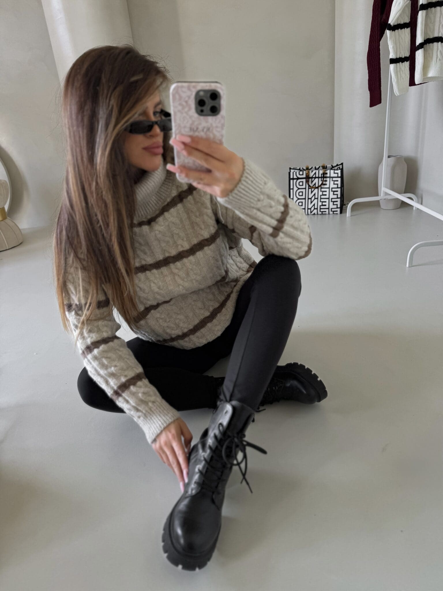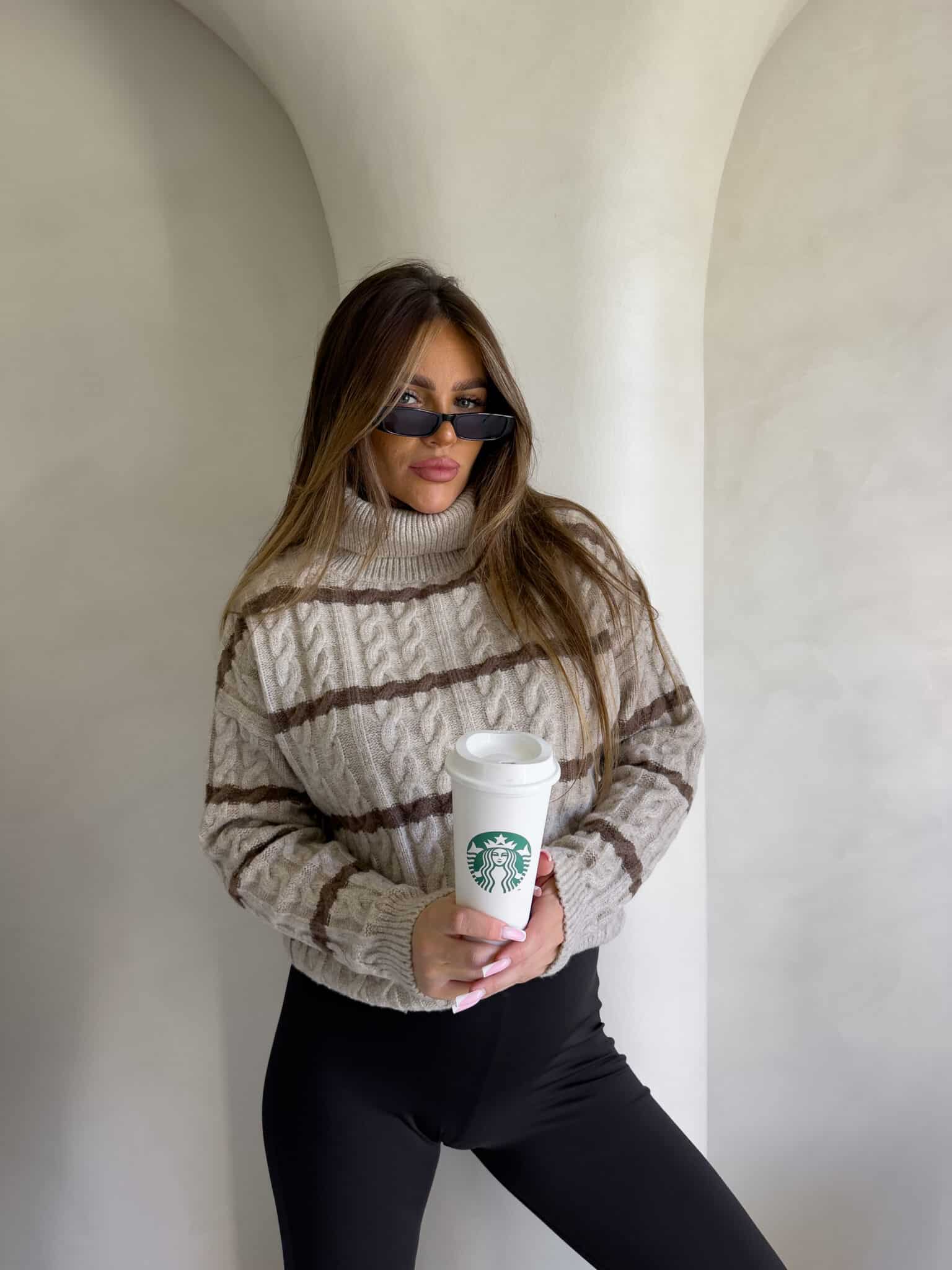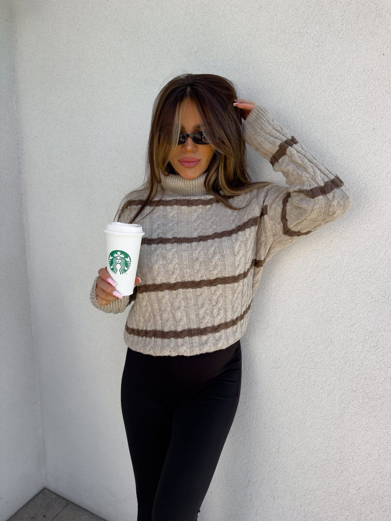 Rollkragenpullover INKO Streifen- beige-Schoko